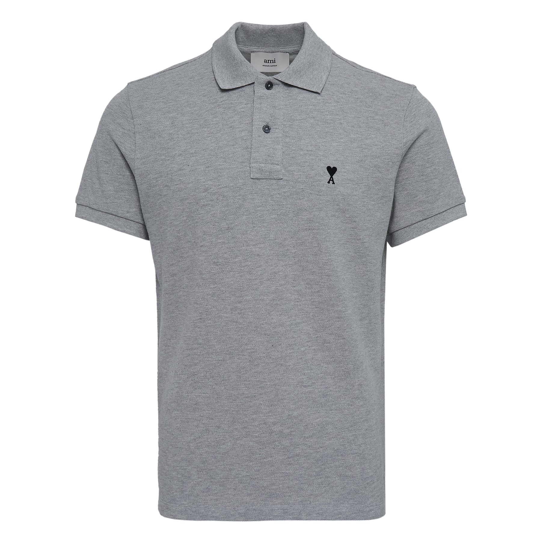 AMI Contrasted Ami de Coeur Polo delivers timeless French elegance with contemporary refinement and everyday versatility. Crafted from premium cotton piqué in sophisticated heather gray, featuring the signature embroidered Ami de Coeur logo at chest. The classic polo silhouette and contrasted collar details create an effortlessly polished look for modern wardrobes.