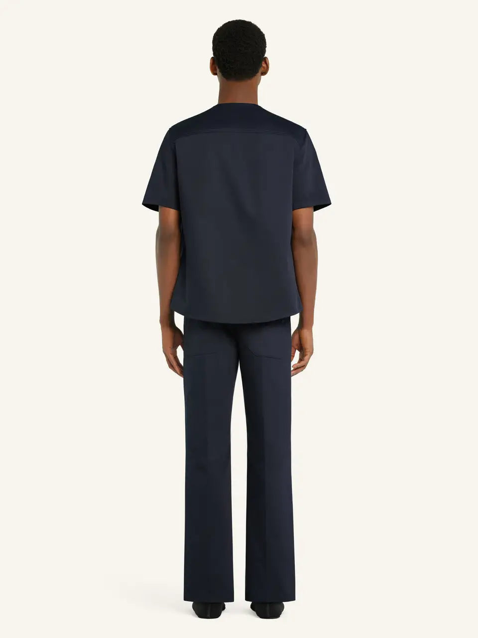 Collarless polycotton short-sleeved shirt with two front patched pockets and AC logo.