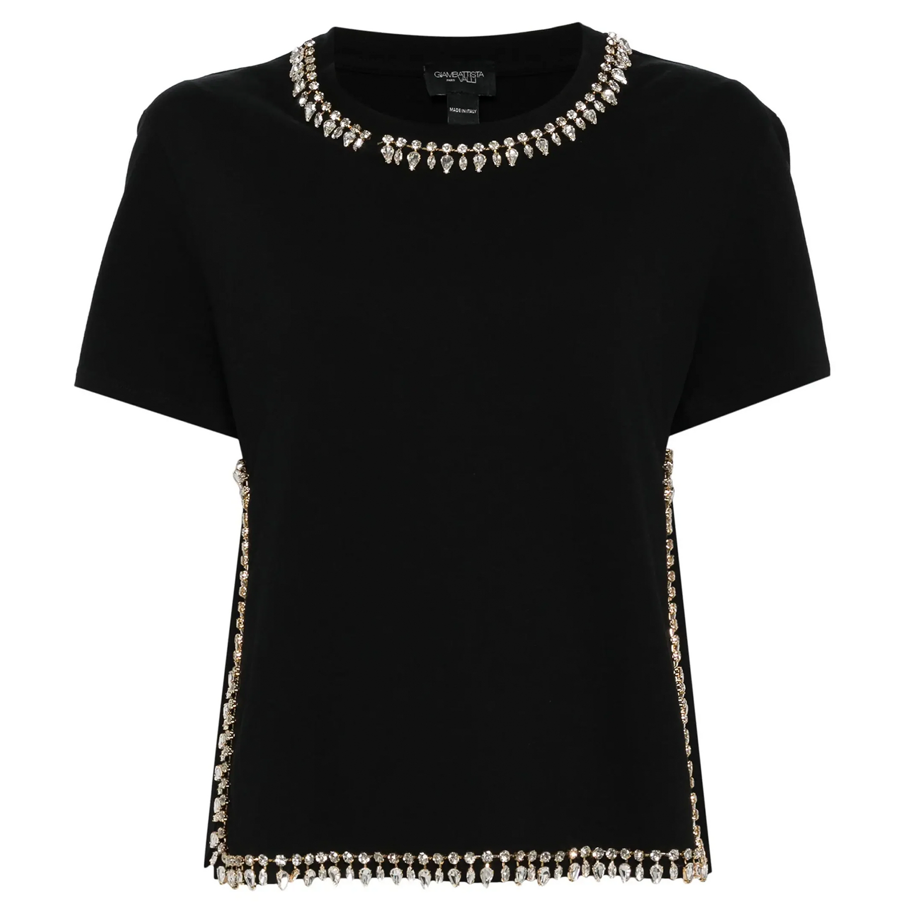 Giambattista Valli Diamante Jersey Tee delivers couture glamour with luxurious crystal embellishments and refined Italian craftsmanship. Crafted from soft cotton jersey in classic black, featuring intricate diamante detailing along the neckline and side seams for sophisticated sparkle. The relaxed fit and premium hand-feel create an elevated essential that transitions effortlessly from day to evening wear.