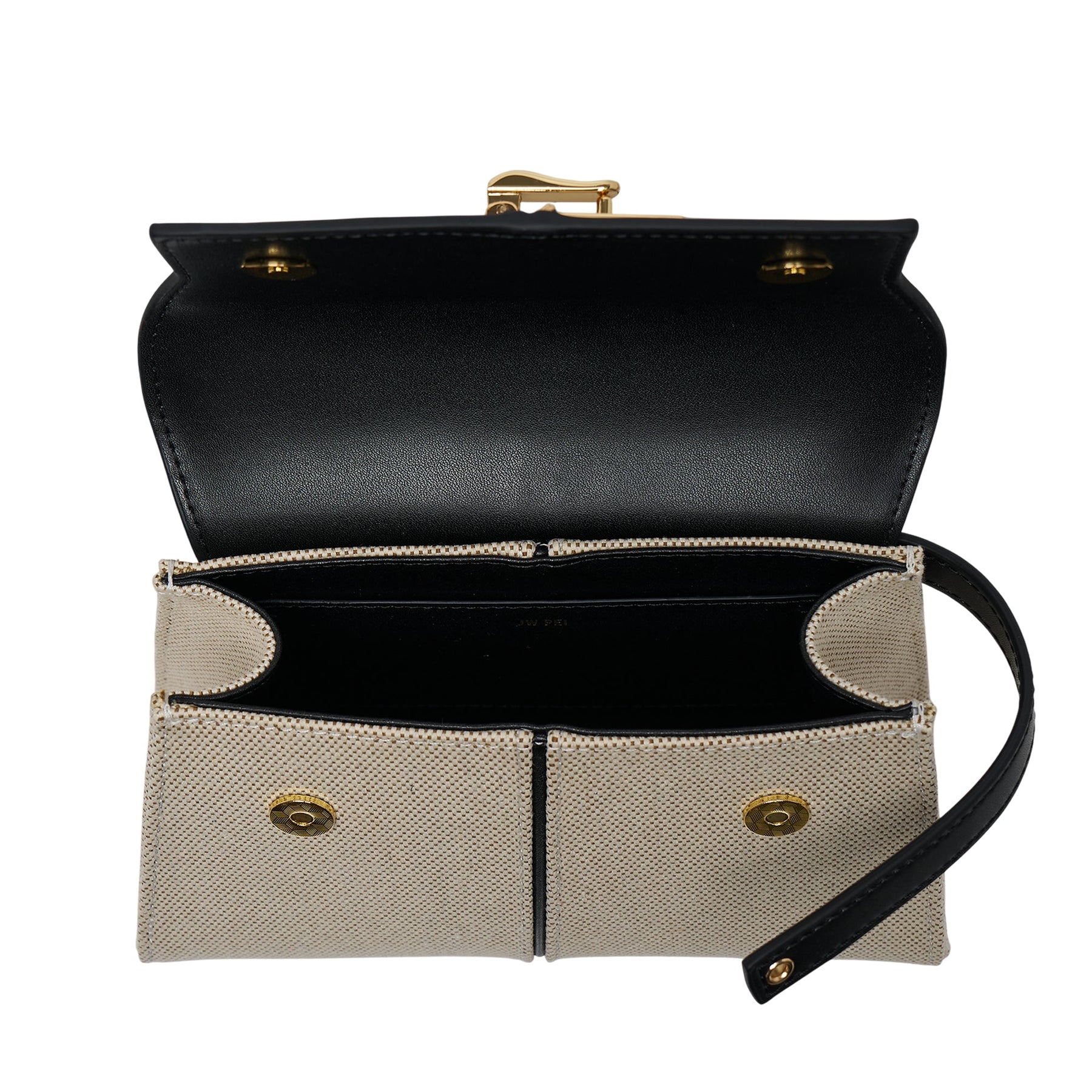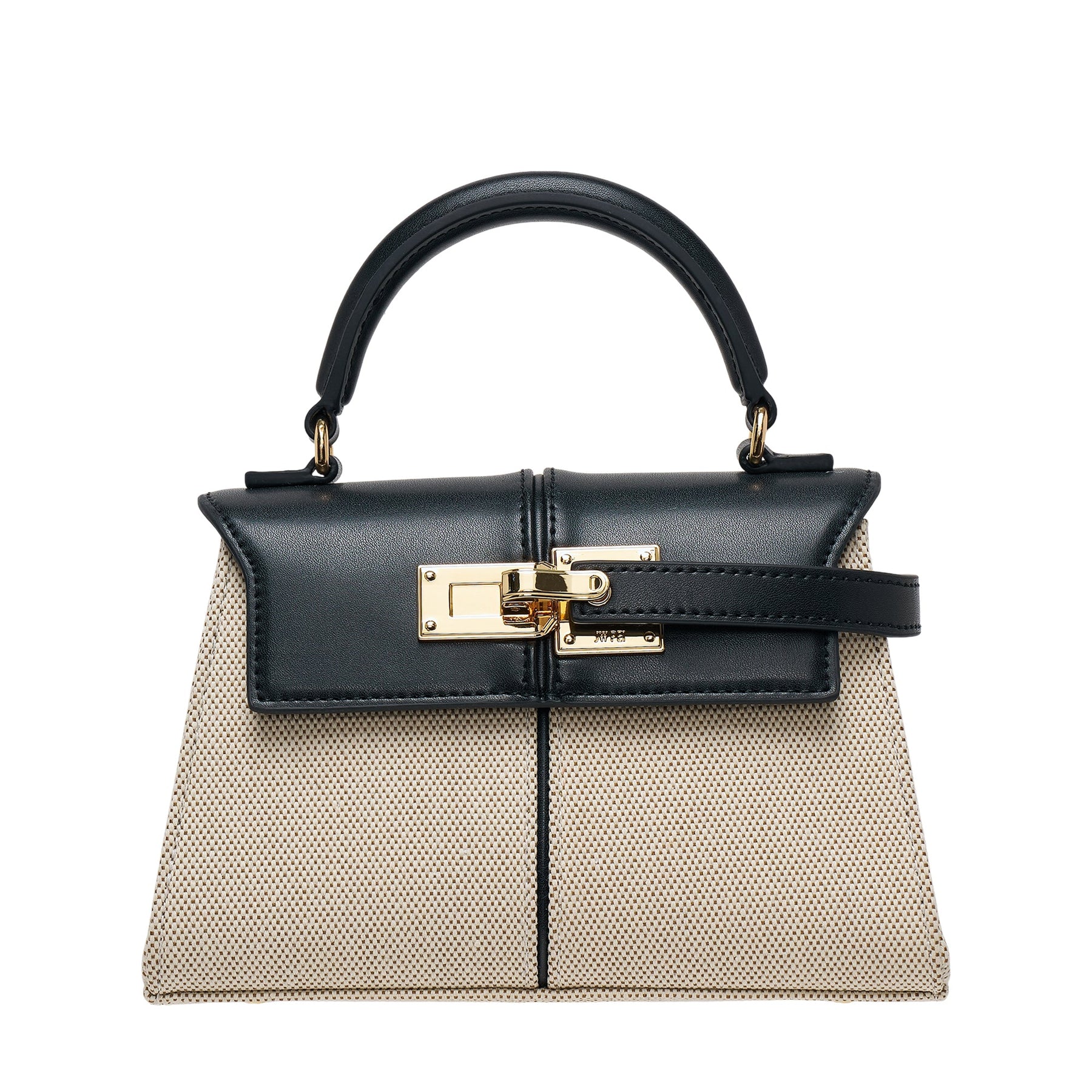 The JW PEI Elise Top Handle Bag delivers structured elegance with contemporary sophistication and versatile carrying options. Crafted from premium canvas with black leather trim, featuring gold-tone hardware and the brand's signature turn-lock closure system. The compact silhouette and refined construction create a timeless accessory perfect for day-to-evening transitions.