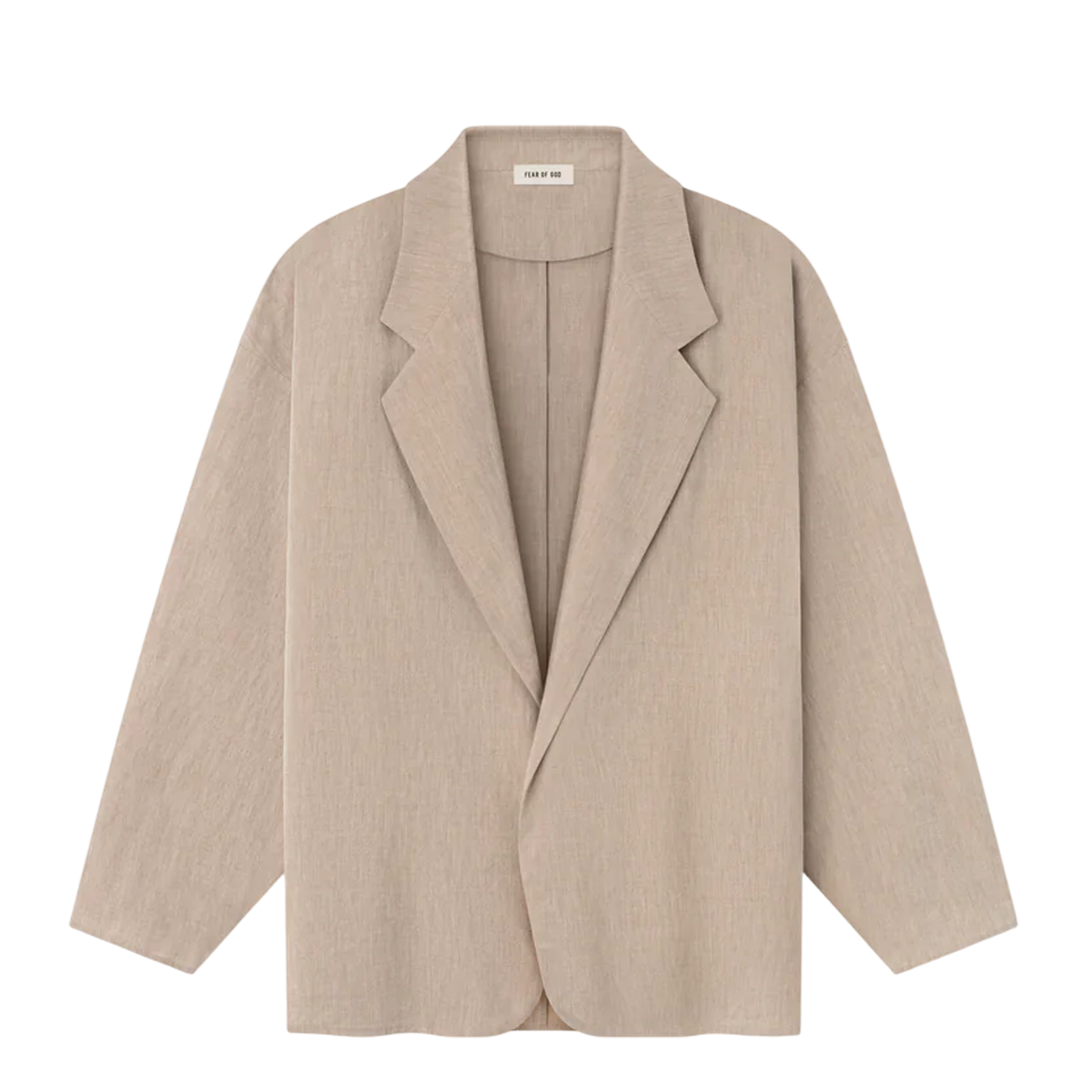 The California Blazer is made in Italy from a wool-cotton blend, and features an unlined and unstructured design that offers a soft tailored look. This casual blazer is cropped with a rounded silhouette and soft shoulders, and it has no closure. A Fear of God label is stitched at the back of the collar.