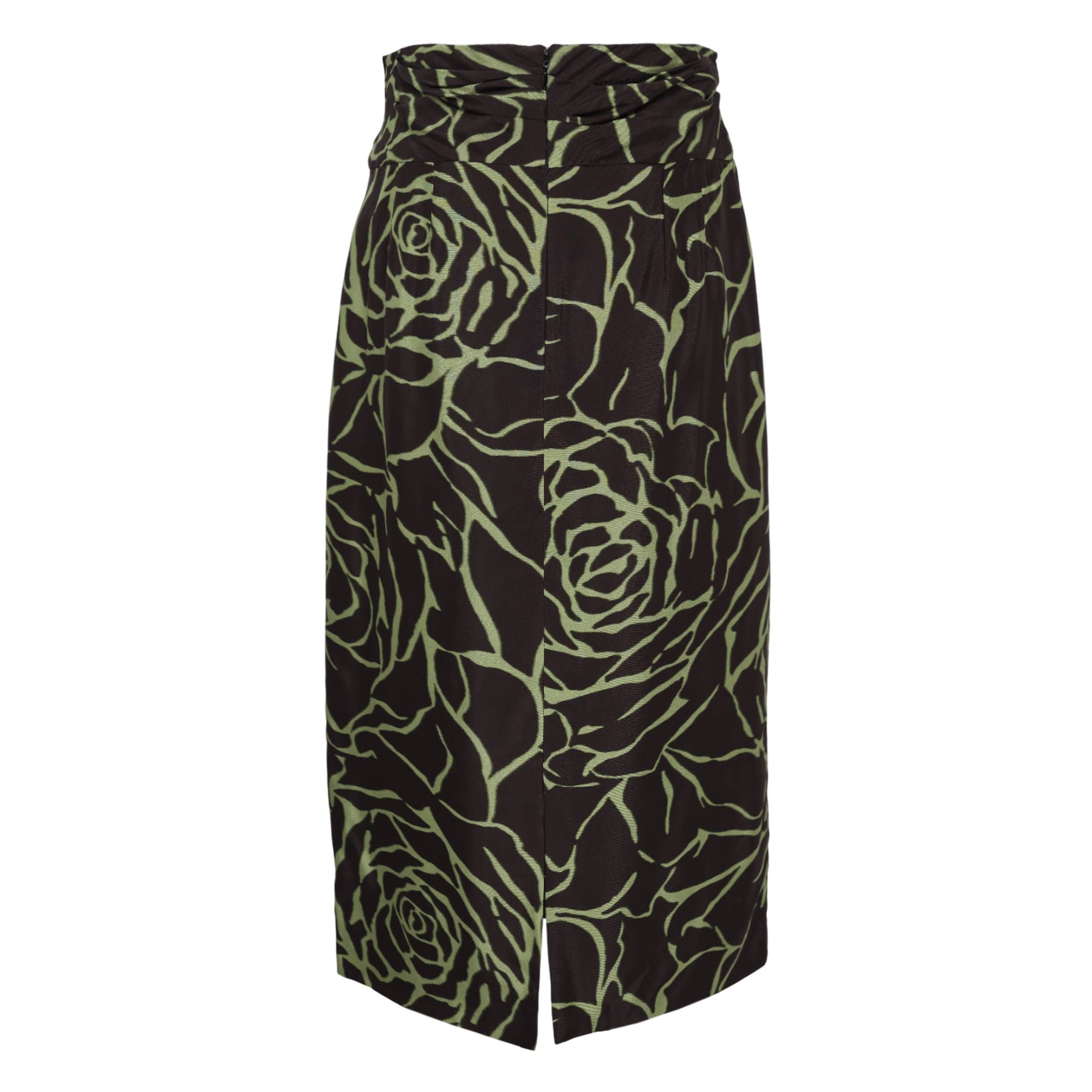 Dries Van Noten Fitted Straight Skirt delivers sophisticated tailoring with bold botanical artistry. Crafted from premium stretch fabric in dark base with oversized green rose print, featuring a high-waisted silhouette and bias detailing. The structured fit and signature Van Noten floral aesthetic create a statement piece that balances elegance with artistic expression.