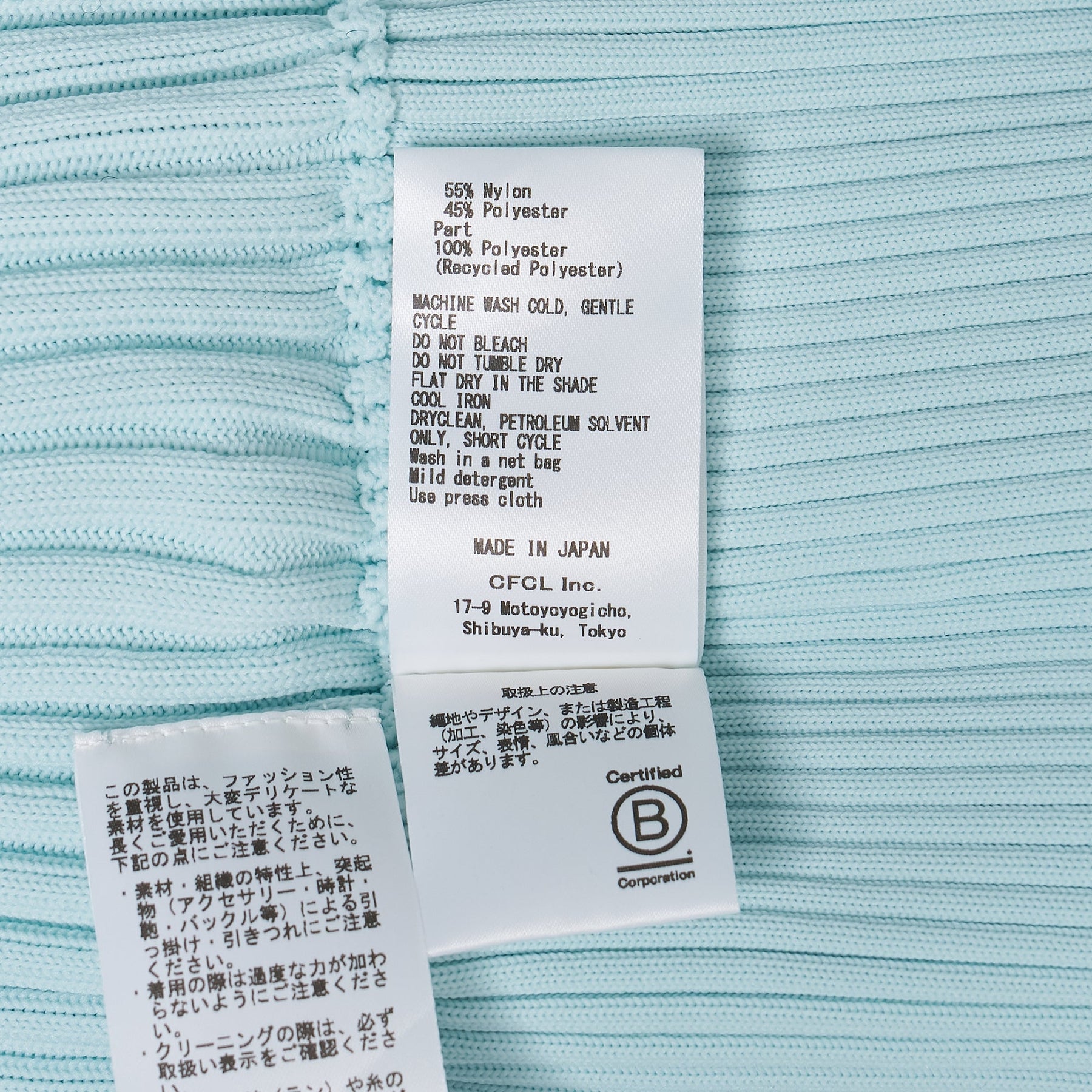 The CFCL Fluted Lucent Marie Sleeve Top delivers innovative knit construction with architectural sleeve design and sophisticated color-blocking. Crafted from premium ribbed knit fabric featuring translucent white sleeves contrasted with a structured light blue bodice. The fluted Marie sleeves and form-fitting silhouette showcase CFCL's signature approach to modern knitwear engineering.