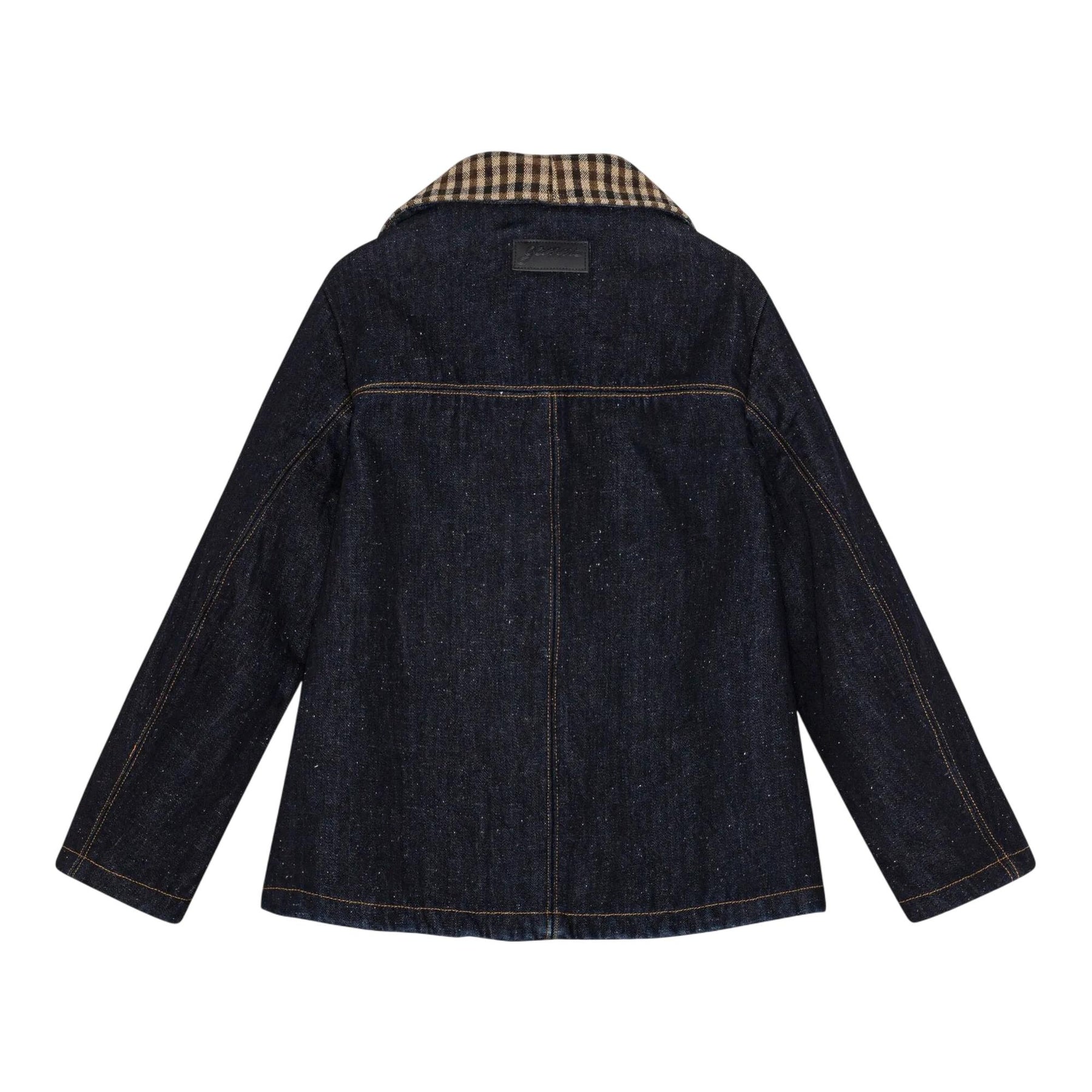 This jacket features a check print collar, button-front closure, 4 pockets and a GANNI logo patch on the back.