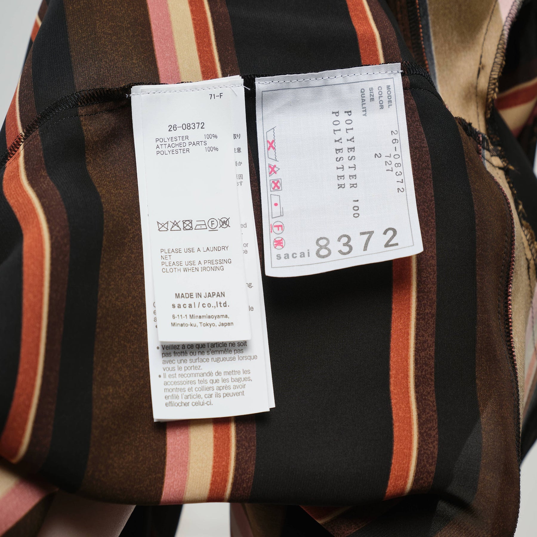 The sacai Horizontal Stripe Pullover delivers avant-garde sophistication with the brand's signature deconstructed aesthetic. Crafted from lightweight woven fabric featuring multicolored horizontal stripes in black, brown, coral, and pink tones with semi-sheer paneling. The oversized silhouette and innovative fabric mixing showcase sacai's mastery of contemporary Japanese design.