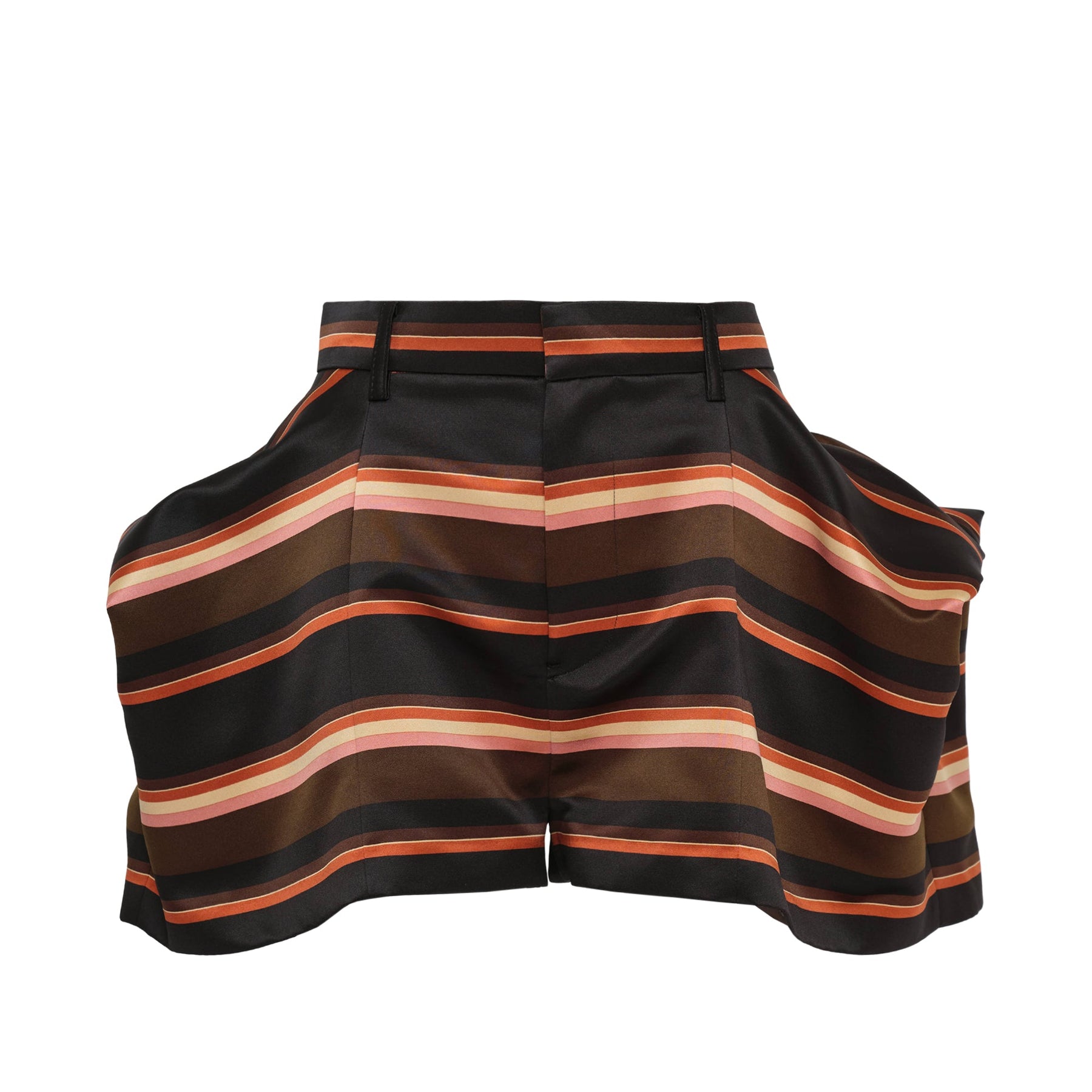 sacai Horizontal Stripe Shorts deliver Japanese avant-garde design with signature multi-directional stripe construction. Crafted from premium cotton blend fabric featuring contrasting horizontal stripes in black, brown, orange, and pink tones. The innovative pattern placement and sacai's distinctive deconstructed aesthetic create a bold statement piece for contemporary streetwear.