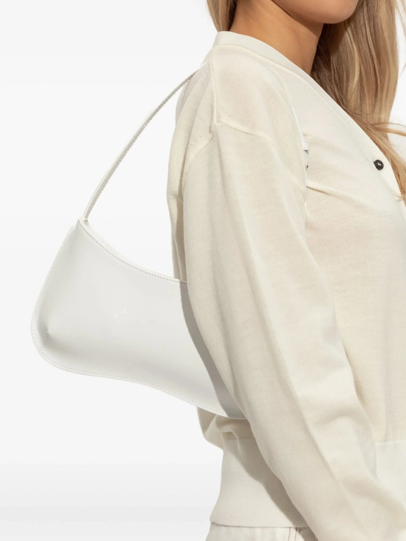 The JACQUEMUS Le Bisou delivers minimalist French luxury with contemporary curved silhouette and refined craftsmanship. Crafted from premium smooth white leather, featuring a sleek single-handle design with adjustable strap and signature clean aesthetic. The structured construction and timeless design create an elegant statement piece for modern sophistication.