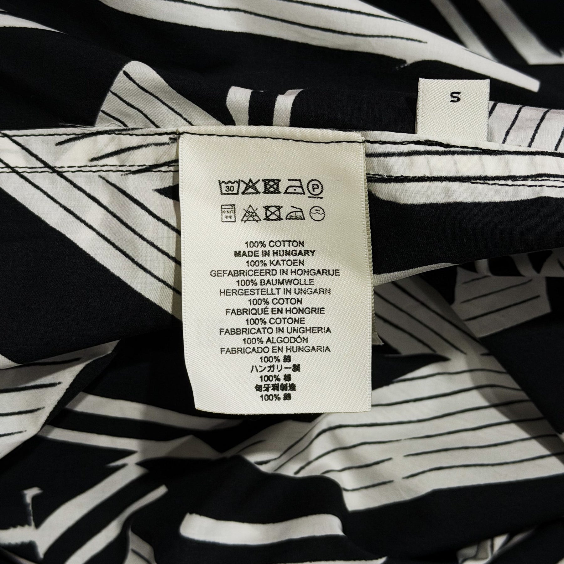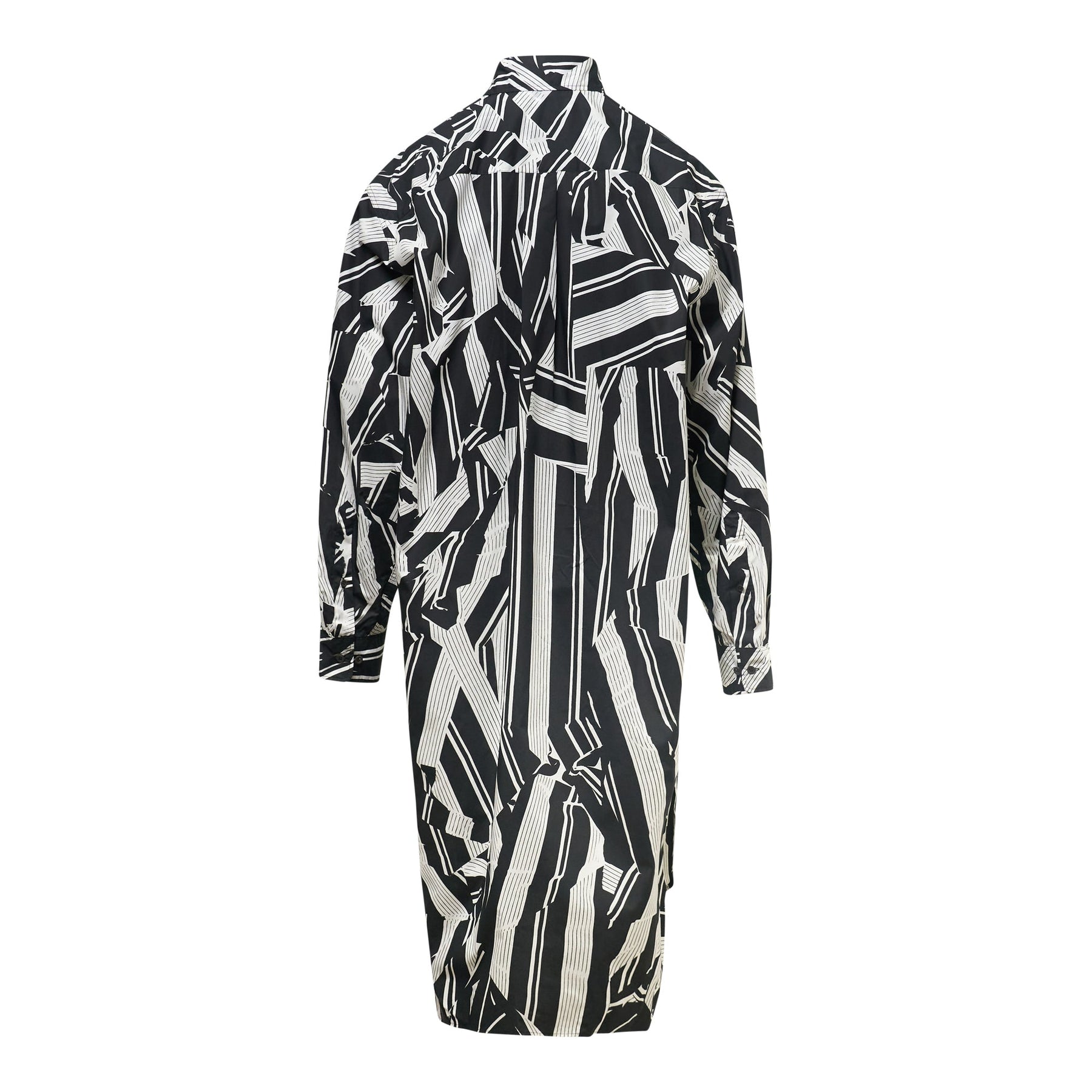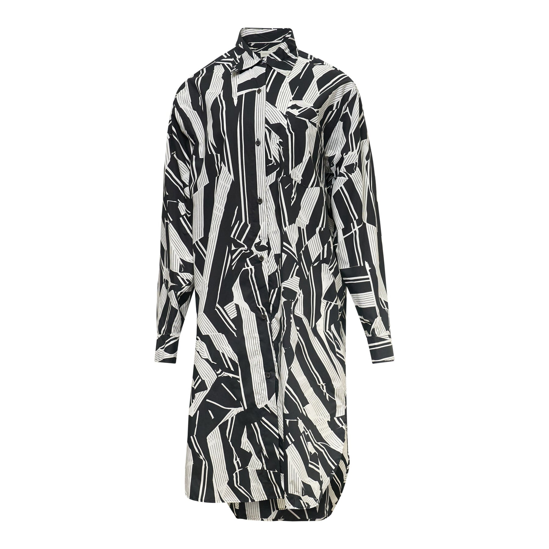 Dries Van Noten Loose Fit Shirt Dress delivers avant-garde sophistication with bold geometric print design and relaxed silhouette. Crafted from premium woven fabric featuring striking black and white abstract striped pattern throughout, creating visual movement and artistic expression. The oversized shirt construction and dramatic print showcase the brand's signature Belgian craftsmanship and artistic vision.