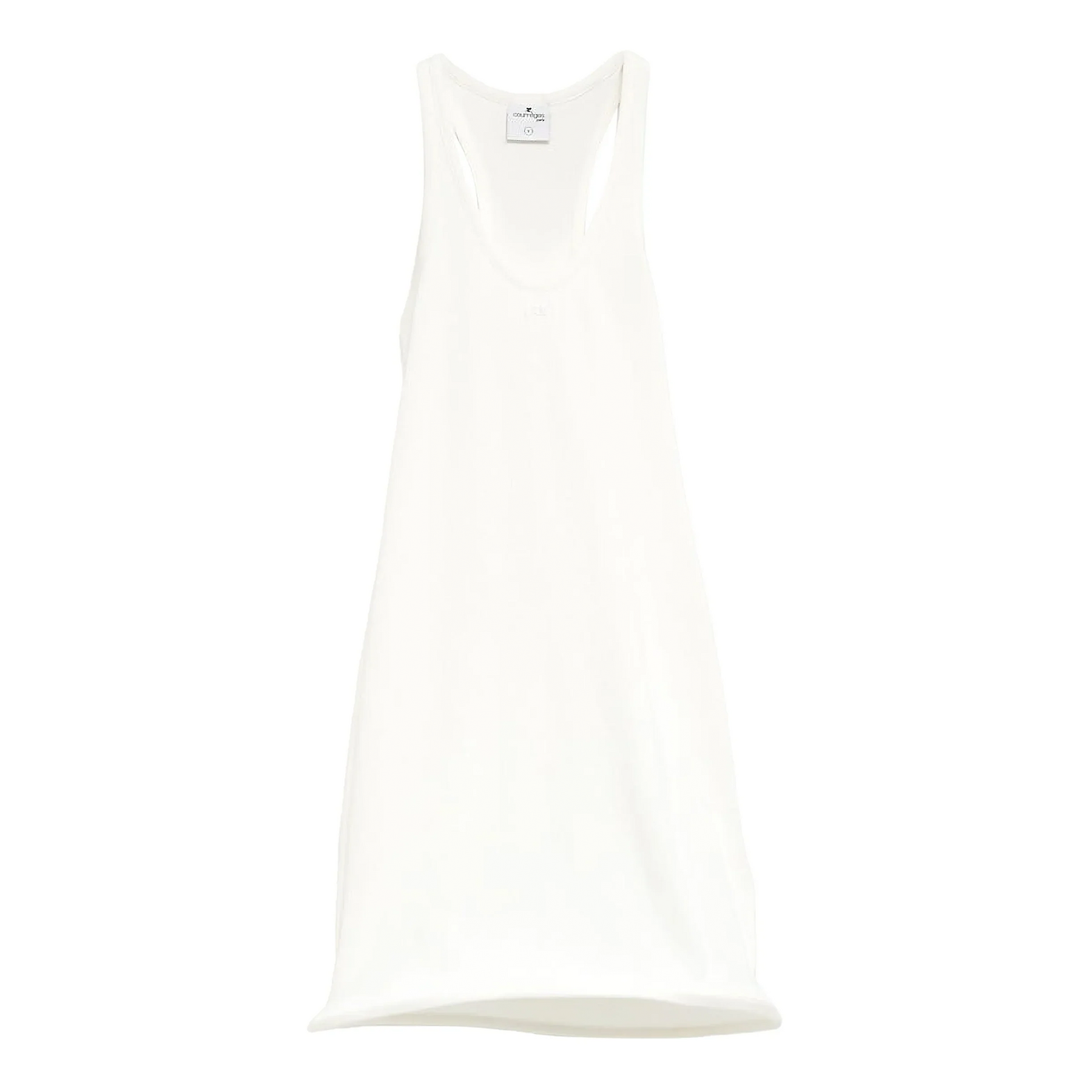 The Courreges Meduse Rib Knit Dress delivers modern minimalist elegance with signature architectural silhouette. Crafted from premium ribbed knit fabric in pristine white, featuring a sleeveless design with scoop neckline and bodycon fit. The brand's futuristic aesthetic and structured construction create a sophisticated statement piece for contemporary wardrobes.