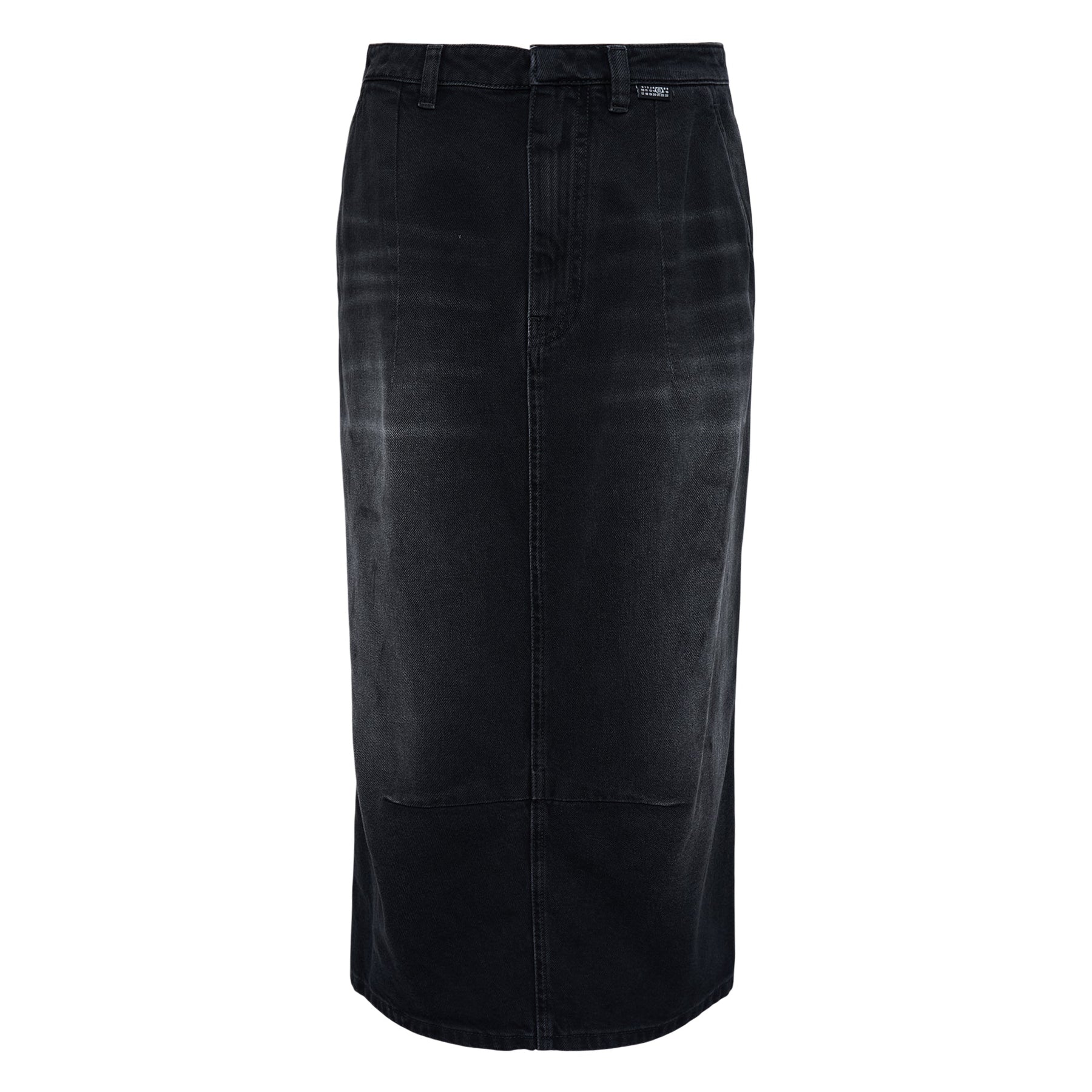 MM6 Midi Skirt delivers contemporary minimalism with deconstructed denim craftsmanship. Crafted from premium black denim with a sophisticated washed finish, featuring clean lines and architectural construction. The structured midi length and signature MM6 aesthetic create a versatile statement piece for modern wardrobes.