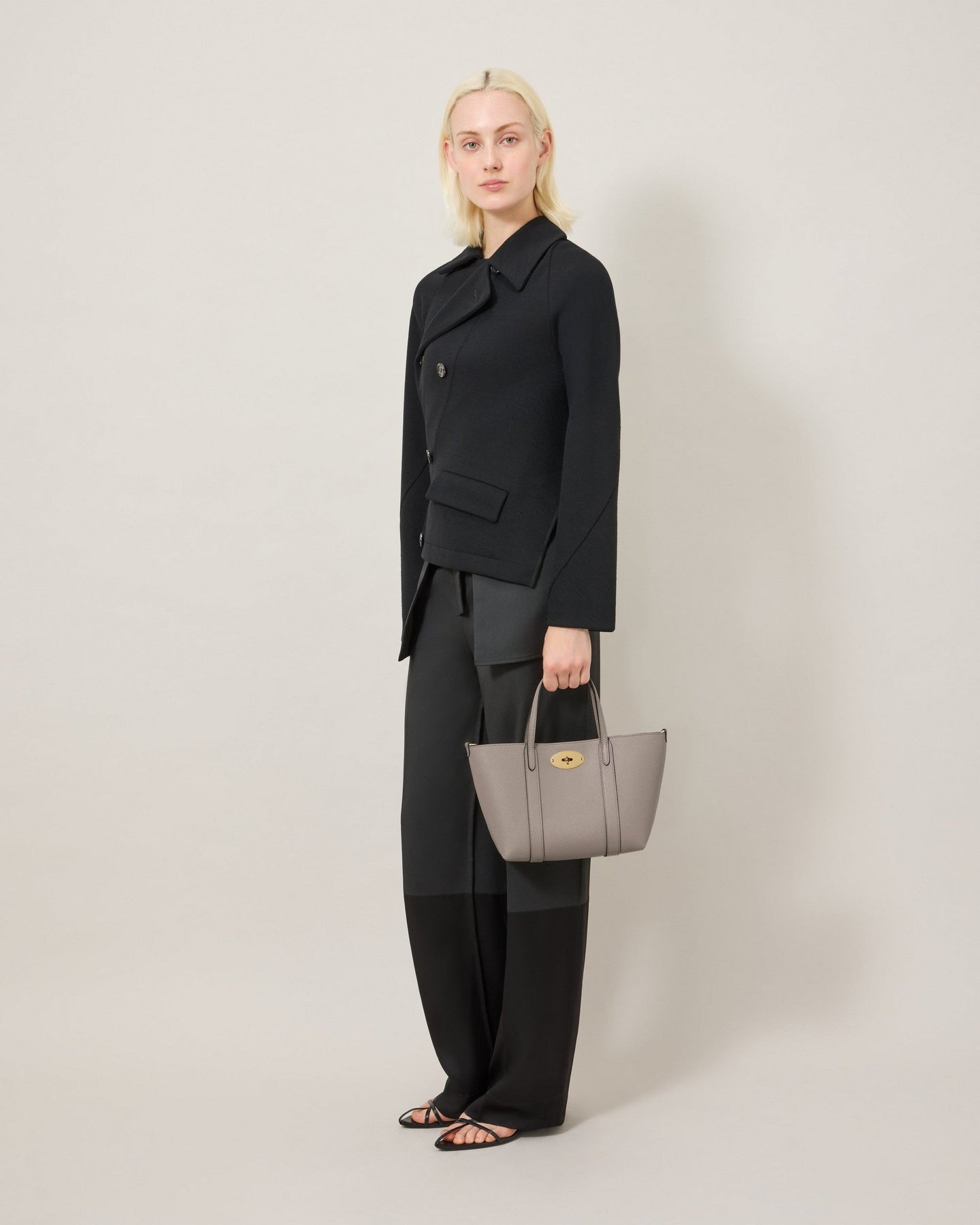 The Mulberry Mini Bayswater Tote delivers timeless British luxury in a compact, versatile silhouette perfect for everyday elegance. Crafted from premium small classic grain leather in sophisticated taupe, featuring the iconic postman's lock closure and refined stitching details. The structured design and dual carry options make this an essential piece that transitions seamlessly from day to evening.