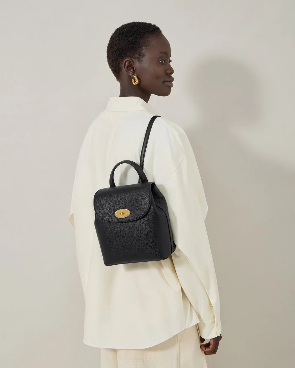 Functional, hands-free design, without compromising style: the Mini Bayswater Backpack takes all the design codes of our original Icon - the Postman's Lock, the internal pockets - and turns it into a chic, feminine backpack that's compact, but big enough for the essentials.