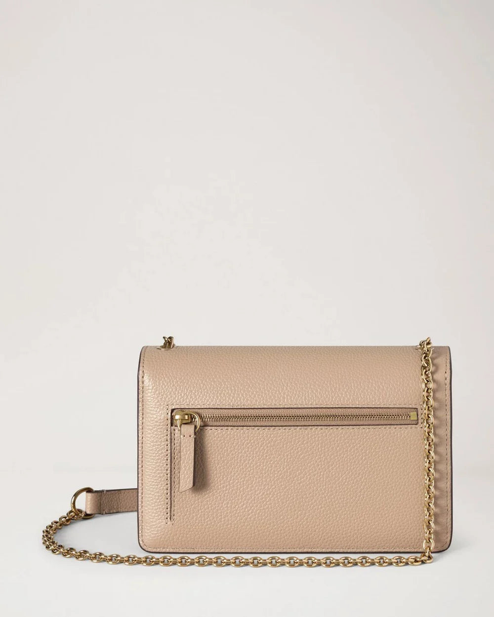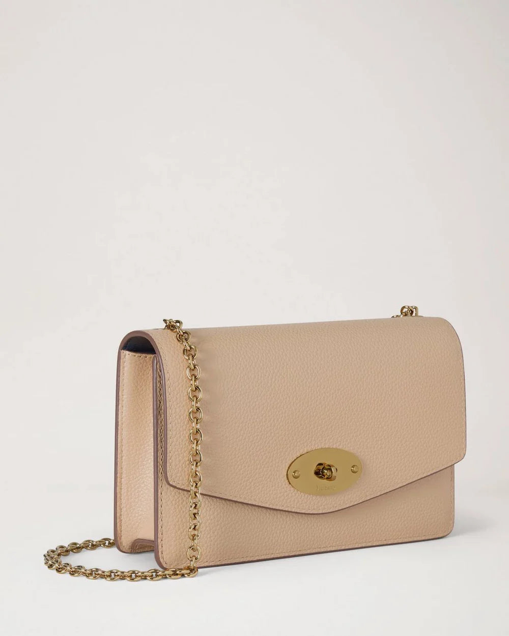 The Mulberry Small Darley Crossbody Bag delivers timeless British luxury with versatile day-to-evening functionality. Crafted from premium small classic grain leather in sophisticated nude beige, featuring the signature postman's lock closure and gold-tone hardware. The compact silhouette and adjustable chain strap create an elegant accessory for modern wardrobes.