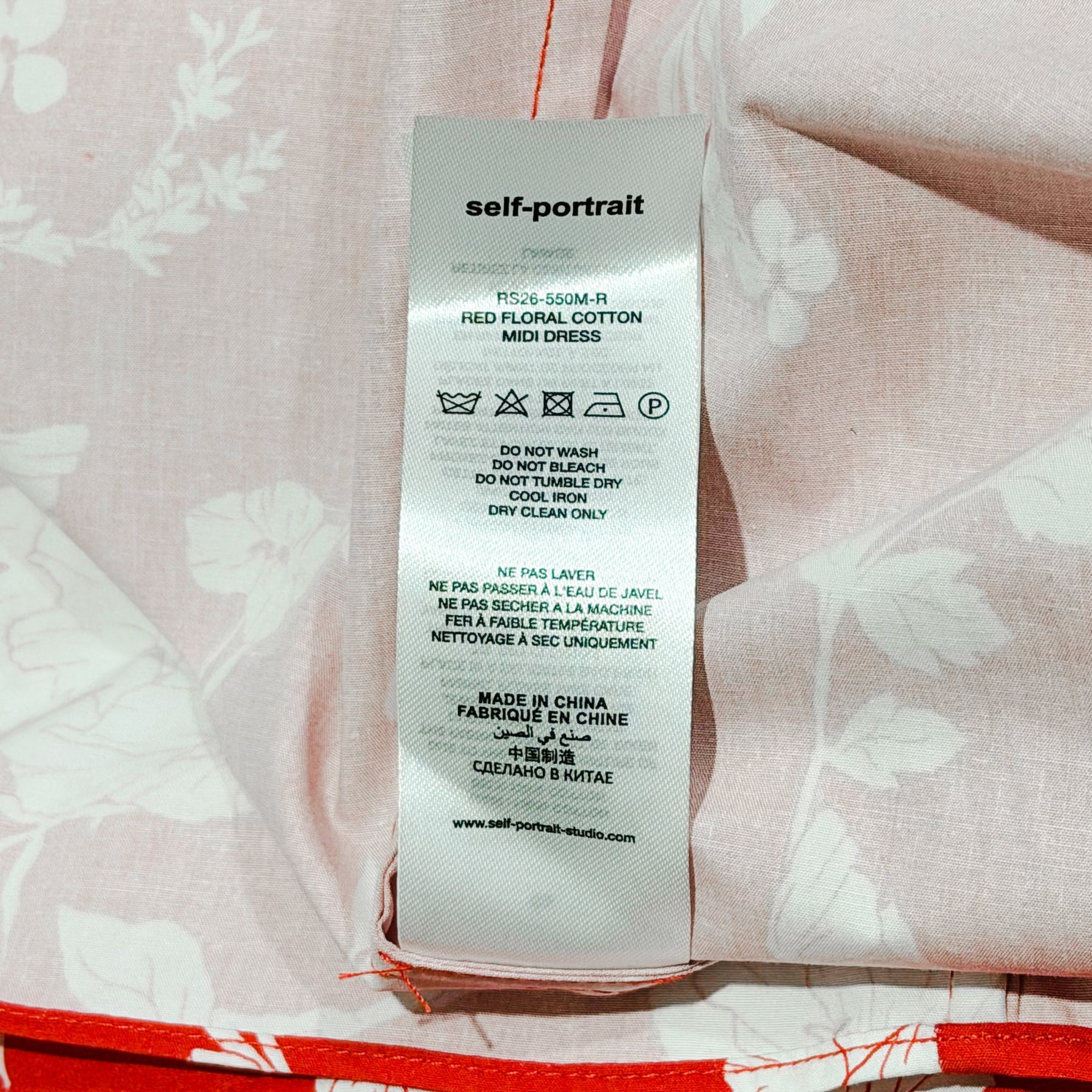 The Self-Portrait Red Floral Cotton Midi Dress delivers romantic femininity with contemporary tailoring and sophisticated silhouette. Crafted from premium cotton in vibrant coral red with delicate white floral motifs, featuring long sleeves and a flattering midi-length hemline. The structured bodice with button-front closure and matching fabric belt create an elegant hourglass silhouette perfect for special occasions.