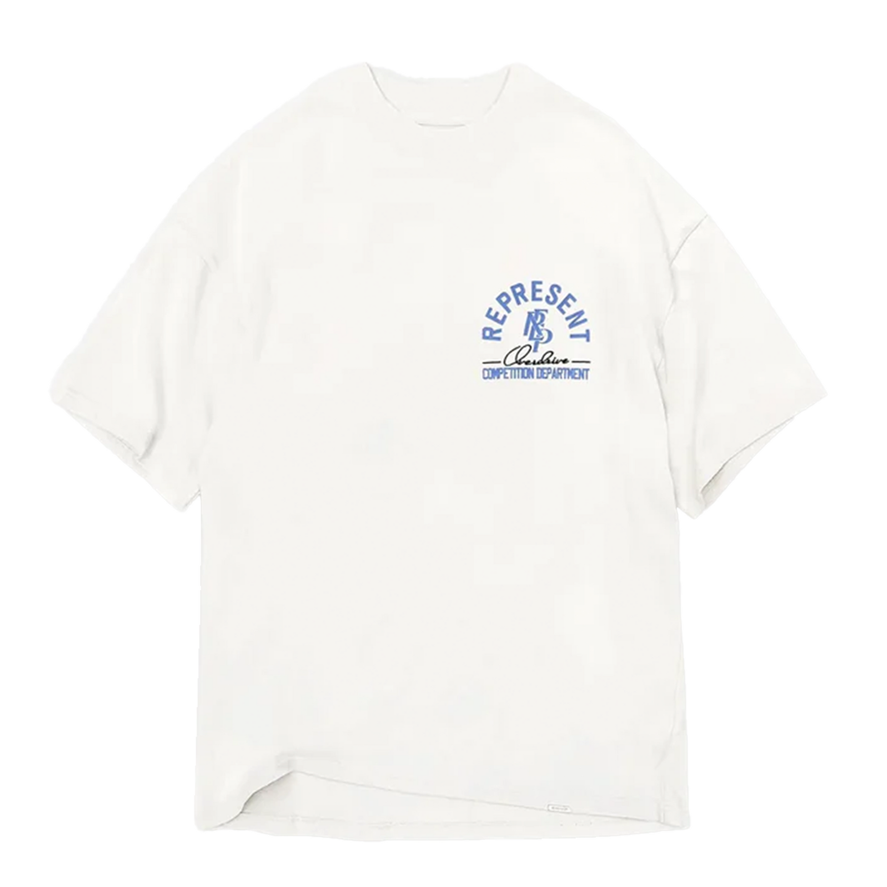 The Competition Department chest graphic and the Represent logo at the back hem, Finished with a ribbed neckline and raw-edge hem detailing and a Represent Logo Metal Bar this T-Shirt is made for everyday wear.