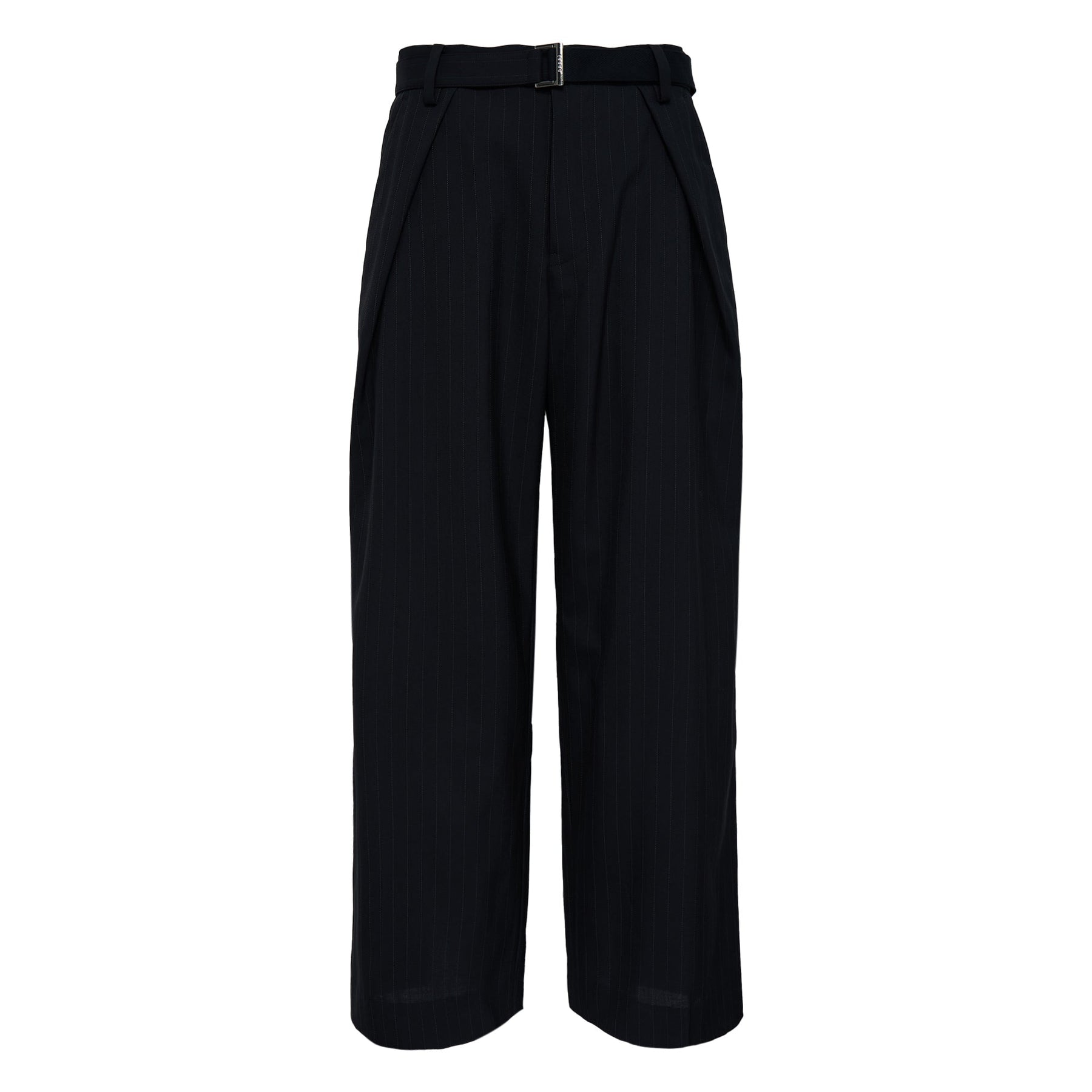 sacai Chalk Stripe Pants deliver sophisticated Japanese tailoring with contemporary architectural construction. Crafted from premium wool blend fabric in deep navy with subtle chalk stripe detailing, featuring the brand's signature deconstructed aesthetic. The relaxed wide-leg silhouette and premium hardware create an elevated statement piece for modern wardrobes.