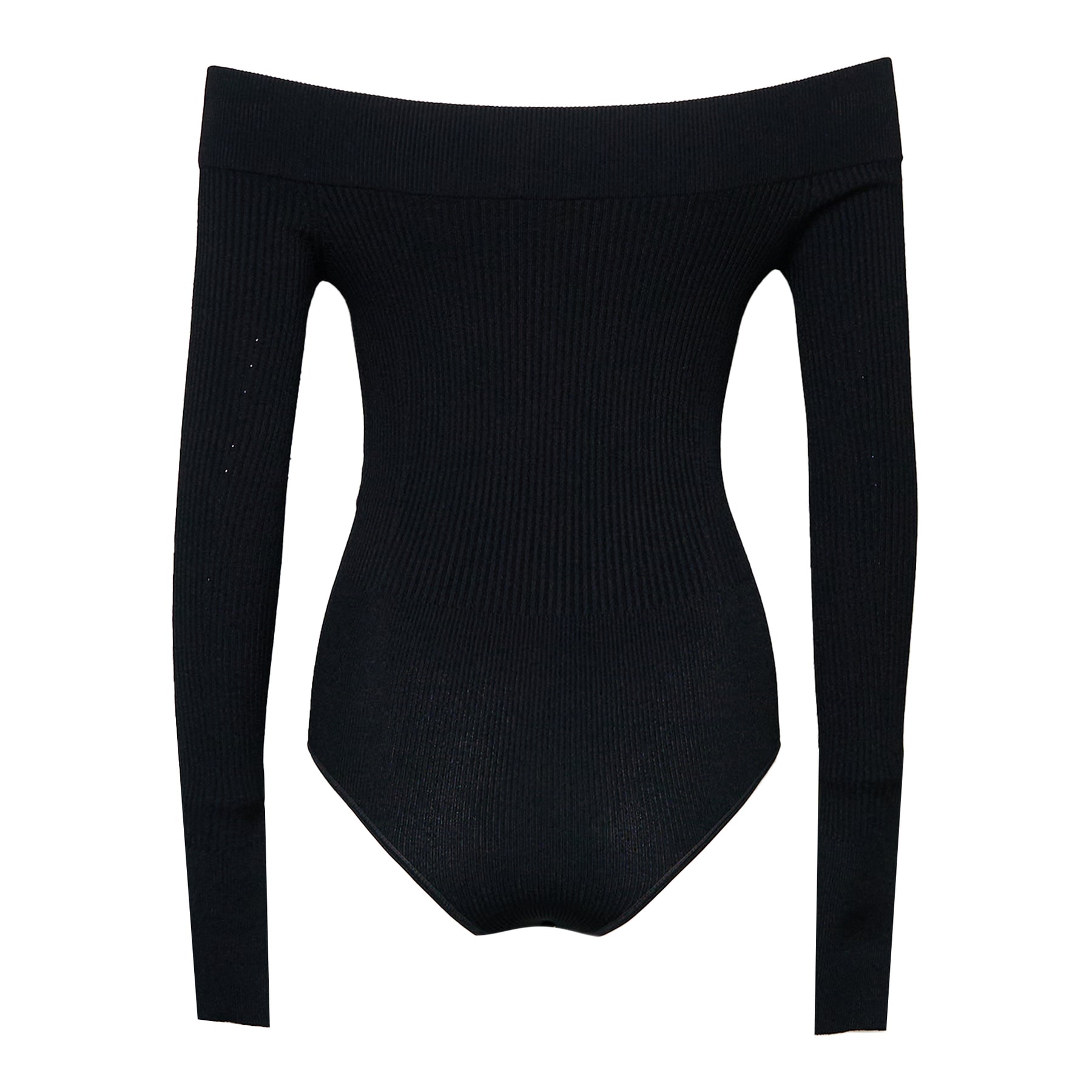 ALAIA Sculpting Rib Knit Off-Shoulder Bodysuit delivers sophisticated silhouette-enhancing design with French couture precision. Crafted from premium ribbed knit fabric with strategic compression zones, featuring the brand's signature body-conscious fit and off-shoulder neckline. The figure-flattering construction and luxurious stretch material create an elegant foundation piece for contemporary styling.