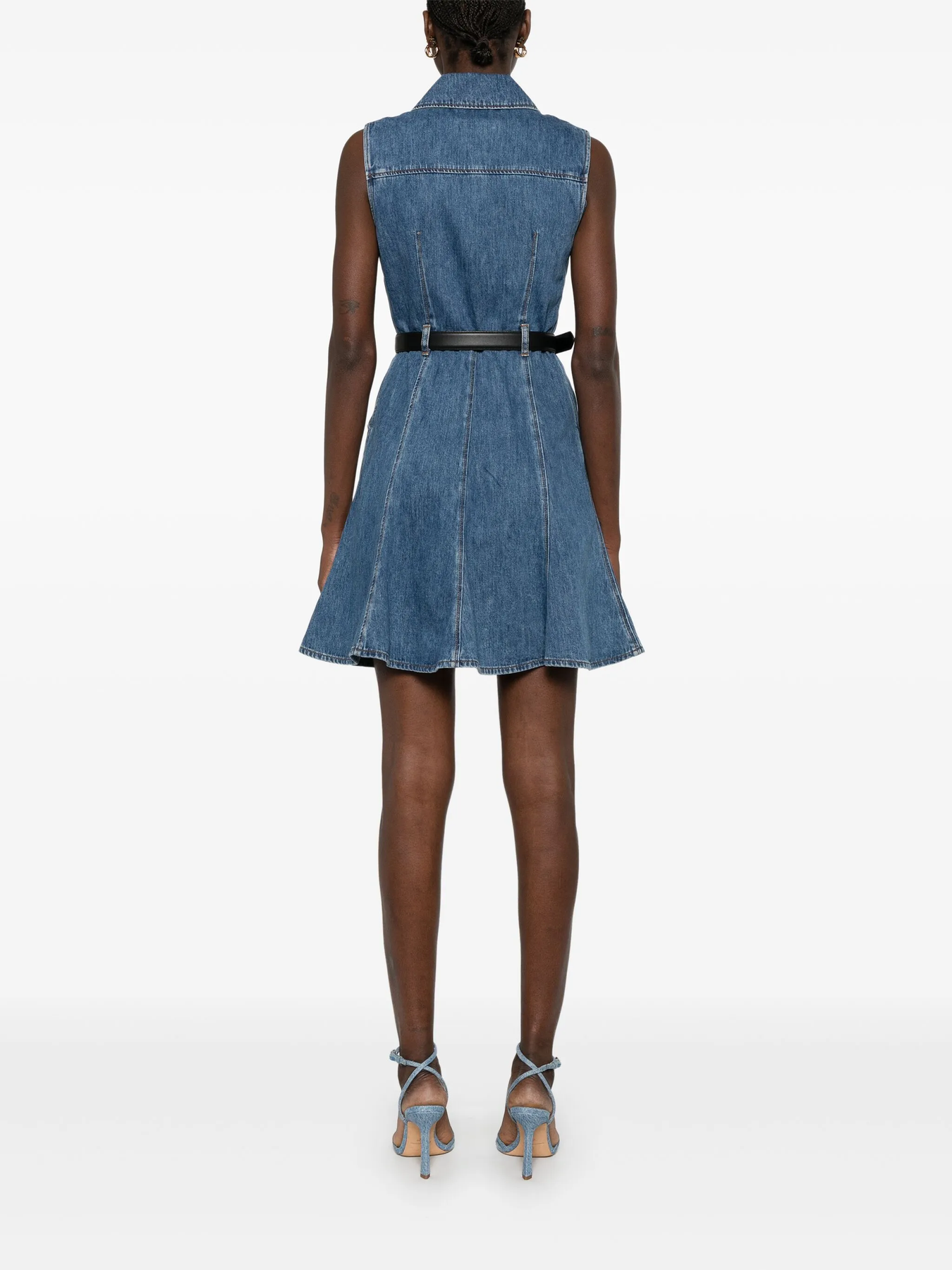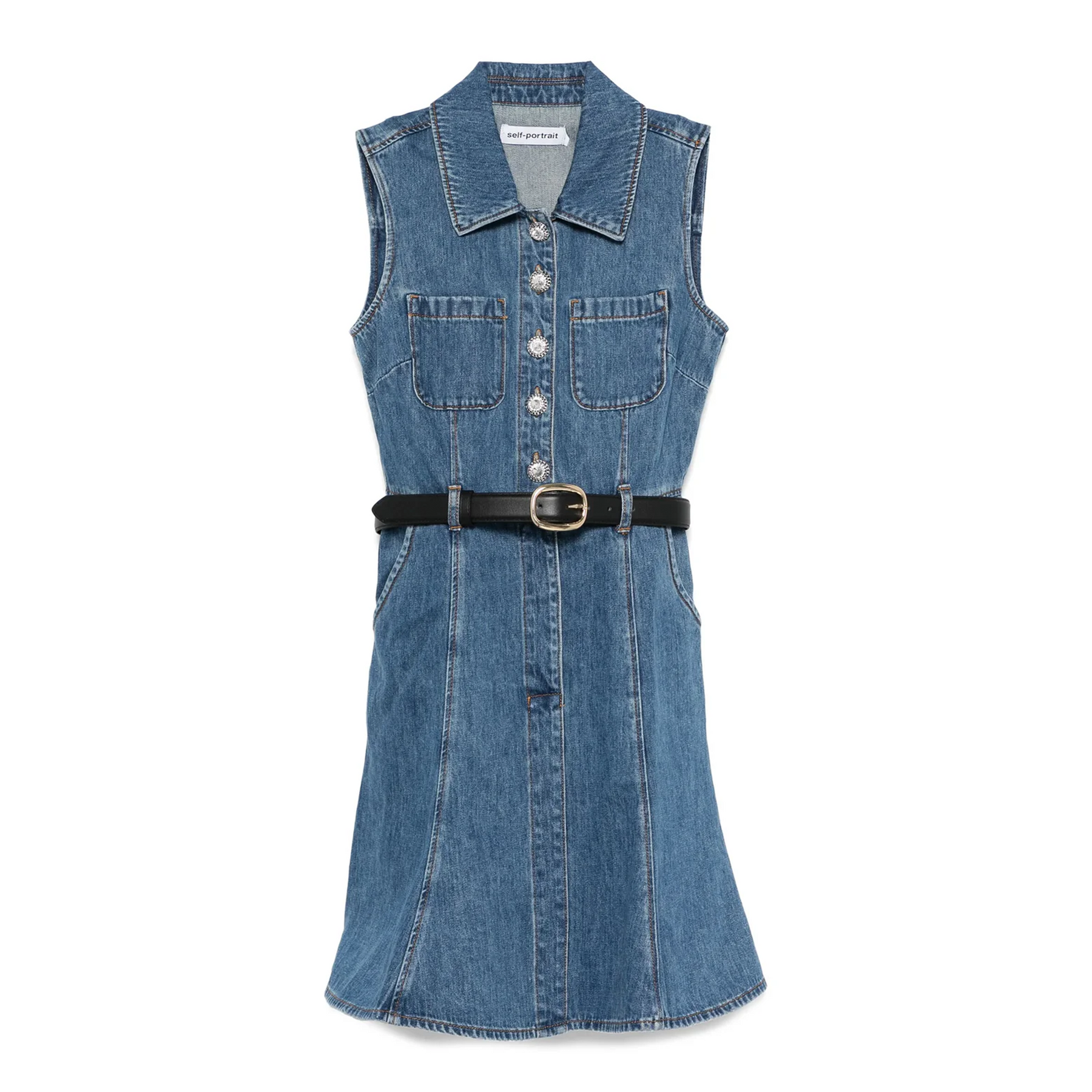 Denim gets preppy in this lightweight dress, with its flattering revere collar and belted waist. Diamante trims and buttons add extra sparkle - pair its flared mini hem with boots and heels alike.