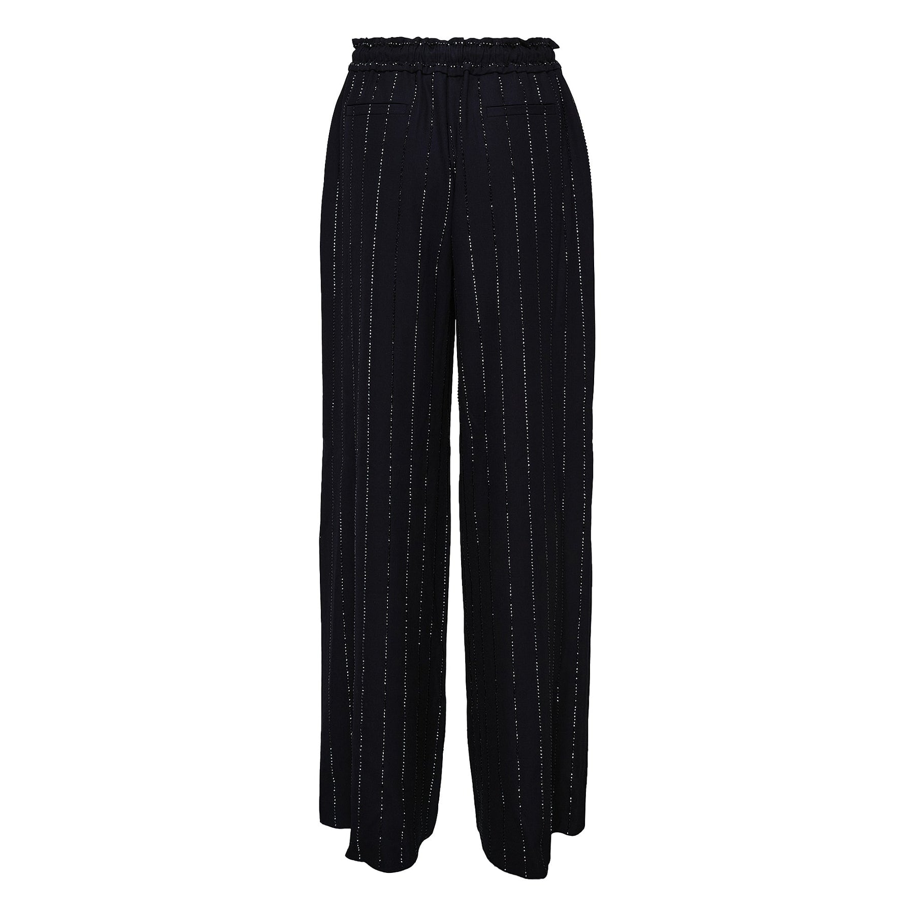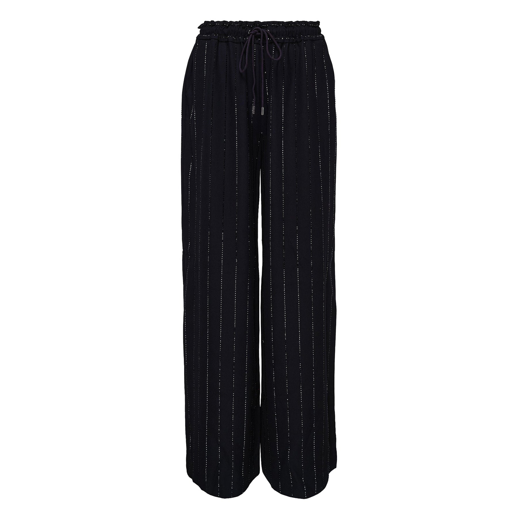 Glittering with rhinestone pinstripes, these wide legged trousers have a fitted elastic waistband, offering a relaxed alternative to event dressing. Add our matching jacket for extra style points.