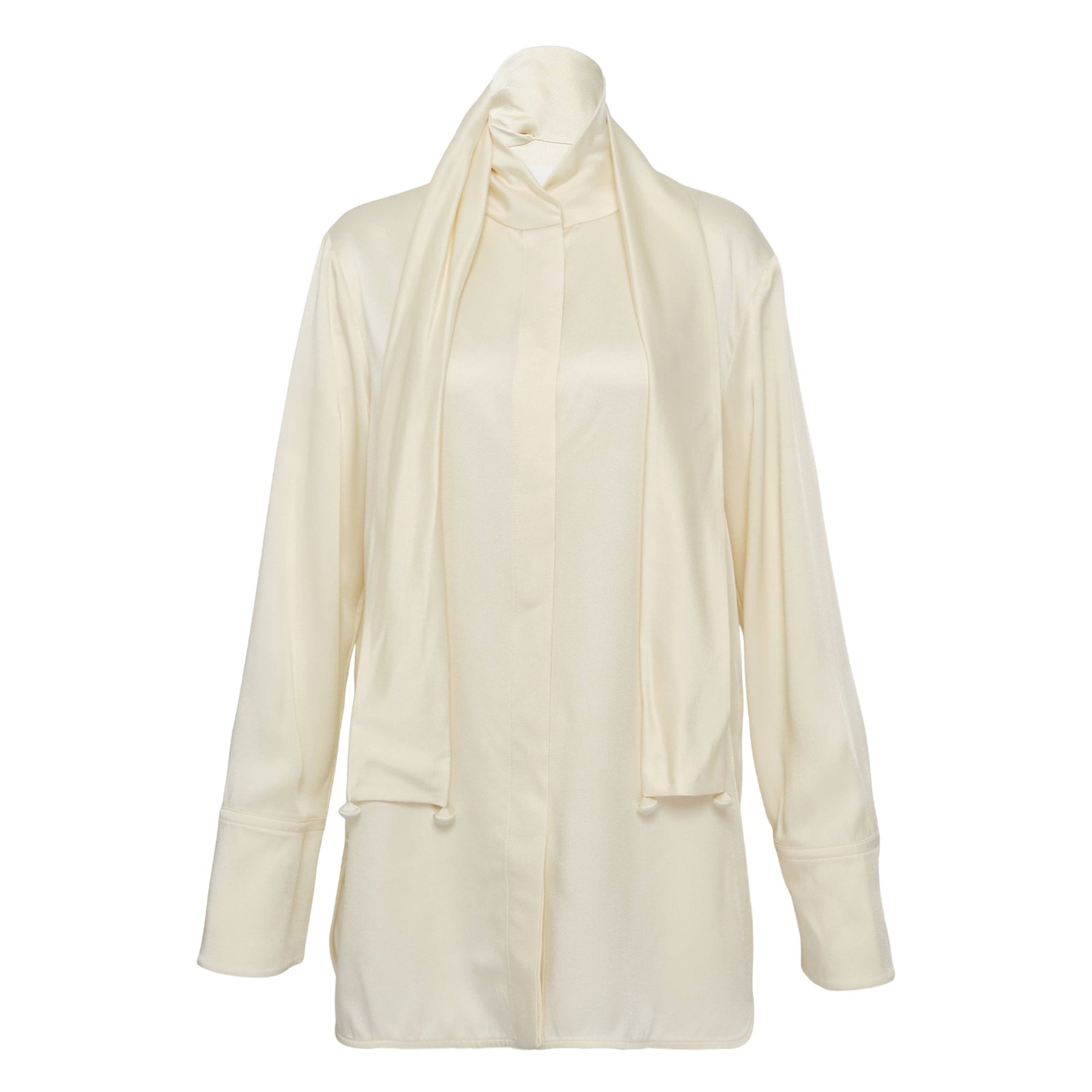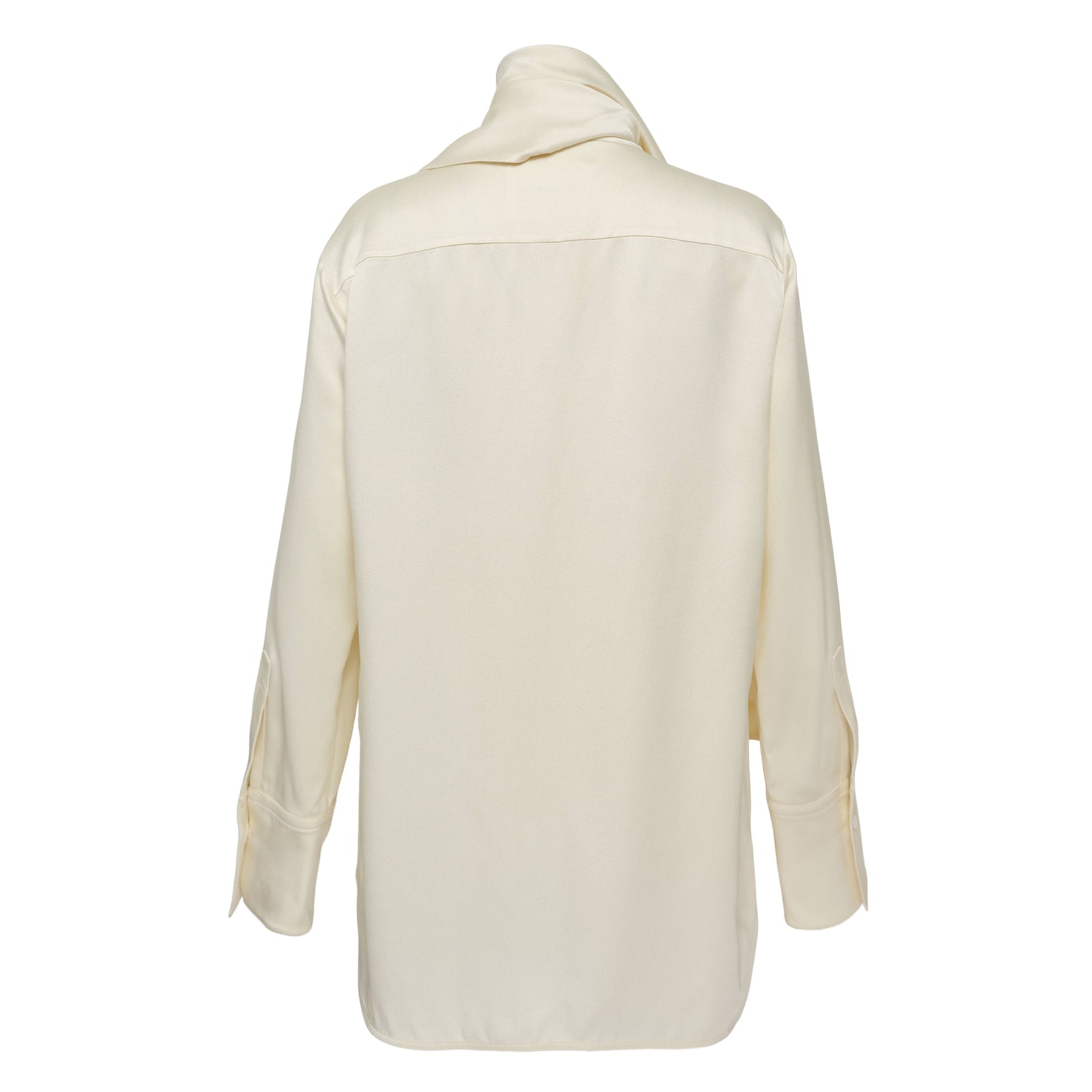 The Jil Sander Enverse Satin Shirt delivers minimalist luxury with architectural draping and refined tailoring. Crafted from premium enverse satin in pristine ivory, featuring an elegantly draped high neckline and contemporary silhouette. The fluid construction and signature clean aesthetic create a sophisticated statement piece for modern wardrobes.
