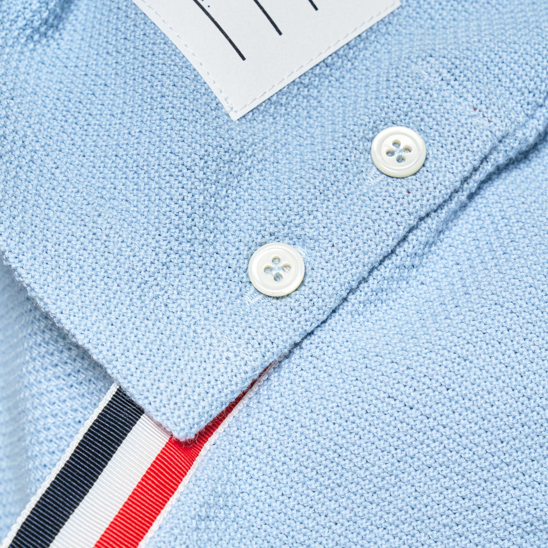 The Thom Browne Short Sleeve Tee delivers preppy luxury with sophisticated athletic-inspired details. Crafted from premium textured cotton in light blue, featuring signature four-bar striping on the right arm and iconic tricolor collar detailing. The relaxed oversized fit and snap-button side details create a contemporary take on classic American sportswear.