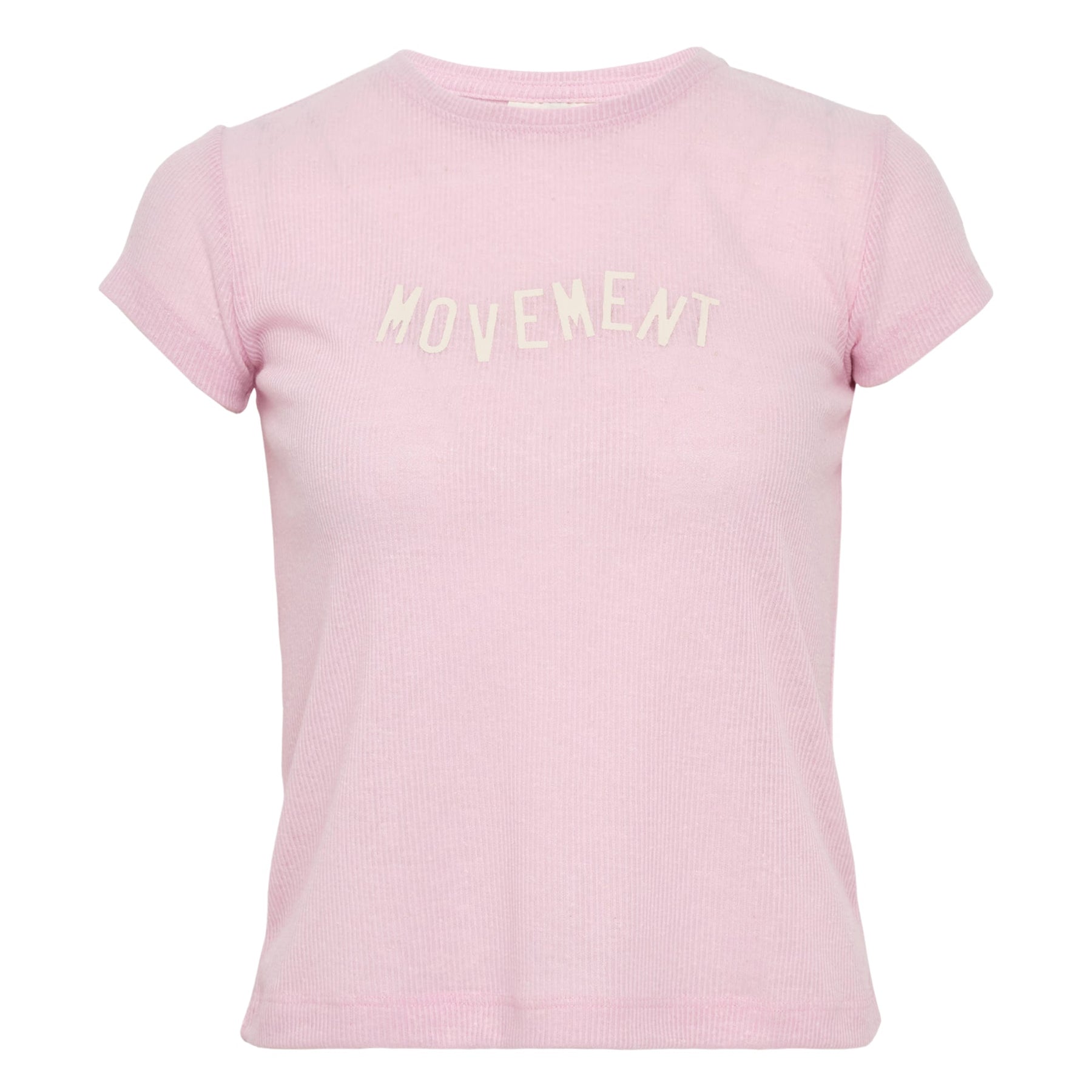 The Rally Movement Slim-Fit Tee delivers contemporary comfort with a tailored silhouette and premium construction. Crafted from soft ribbed cotton blend in elegant pink, featuring a form-fitting cut that flatters the figure. The minimal 'MOVEMENT' branding across the chest adds a subtle athletic-inspired aesthetic to this versatile wardrobe essential.