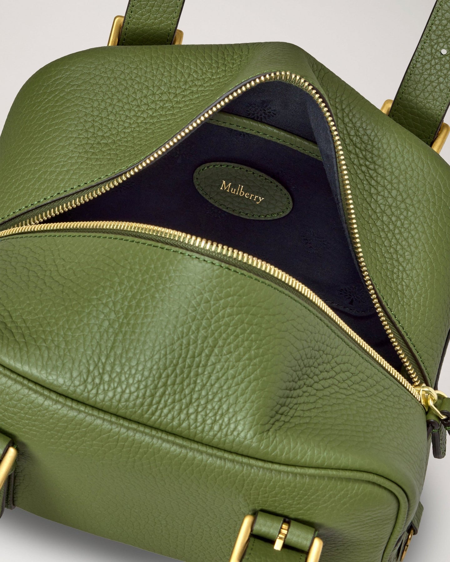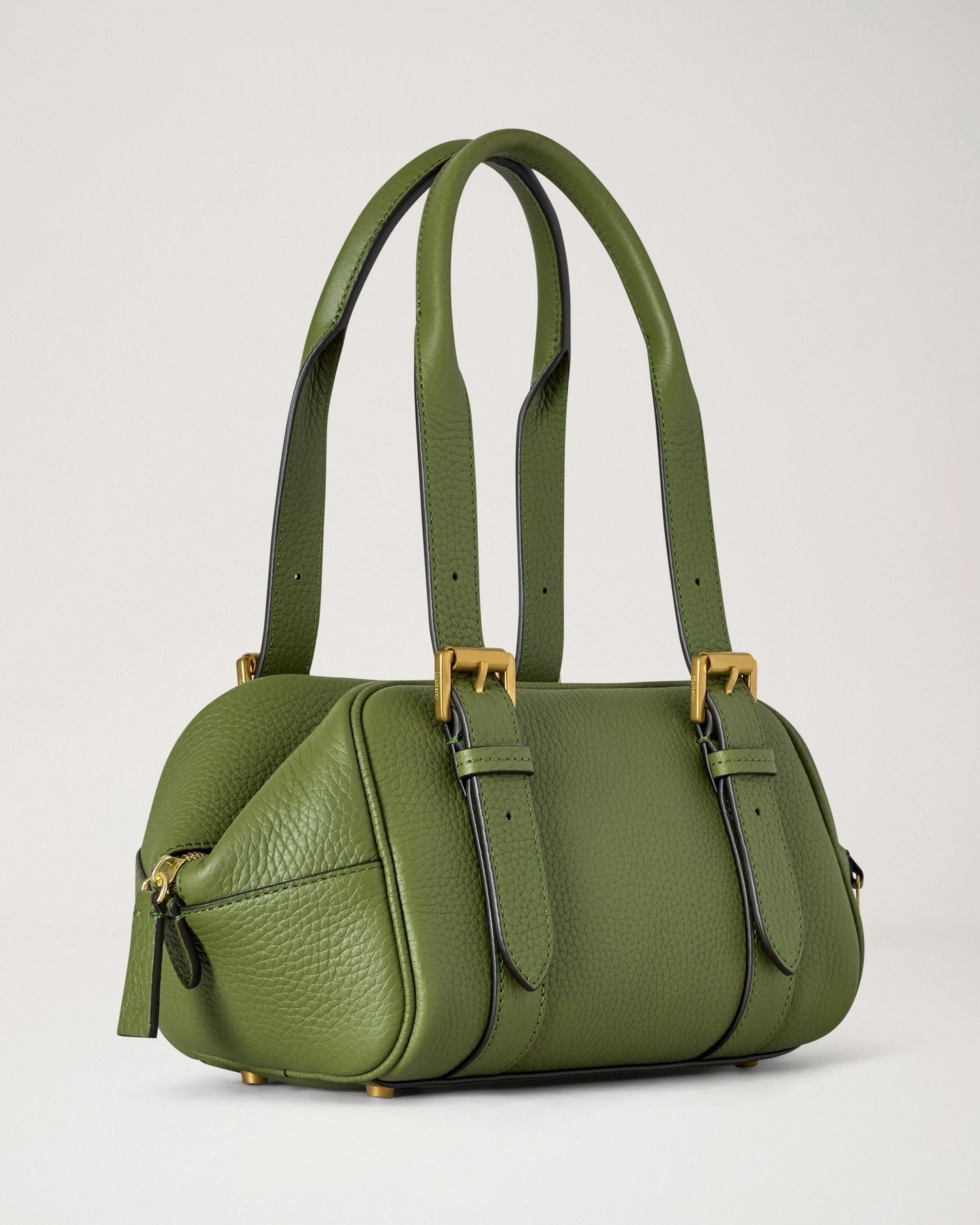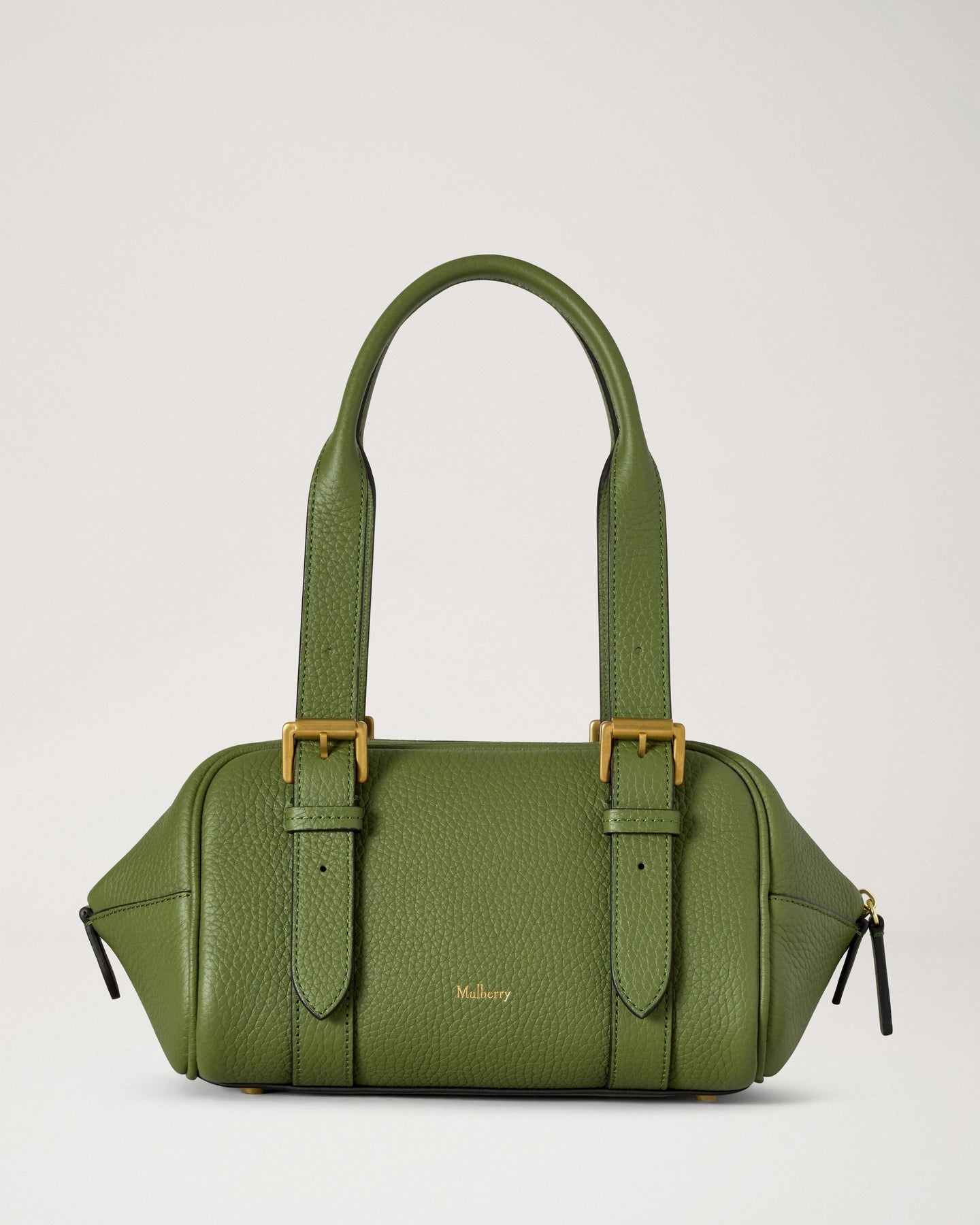 The Mulberry Small Boston Heavy Grain delivers timeless British luxury with structured elegance and versatile functionality. Crafted from premium heavy grain leather in sophisticated olive green, featuring gold-tone hardware and the brand's signature craftsmanship. The compact silhouette and dual handle design create a refined statement piece for contemporary lifestyles.
