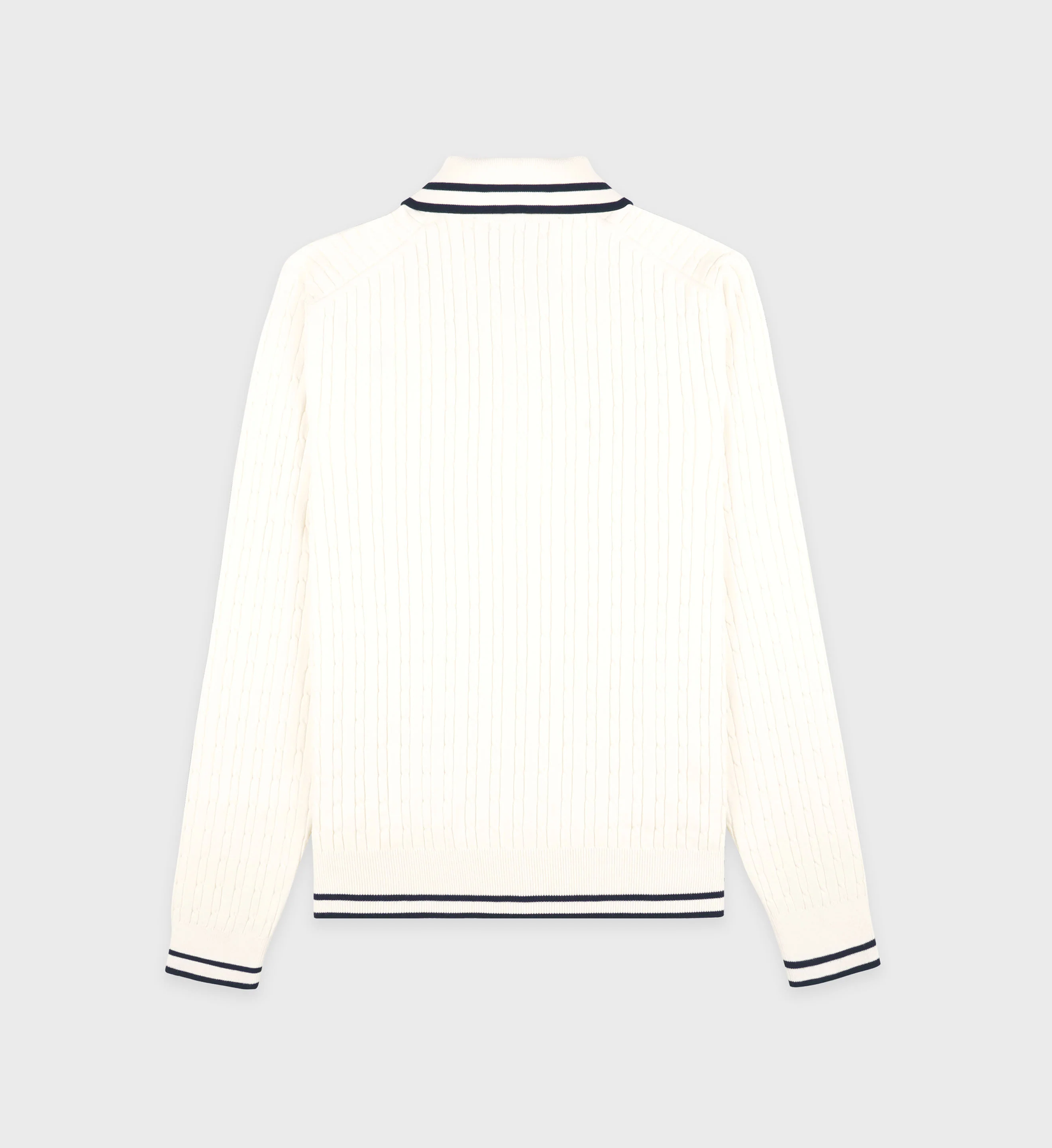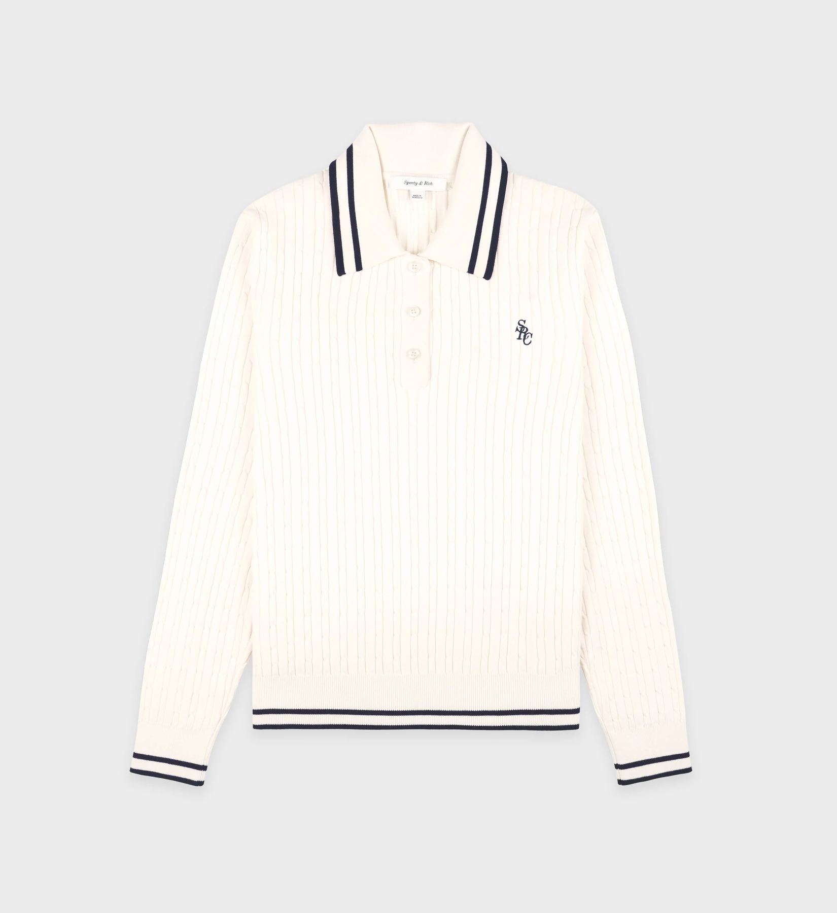 Constructed of a comfortable fabric blend, our Cableknit polos feature a cableknit pattern and contrasting stripe details around the collar, bottom and sleeve cuffs. Our SRC logo is embroidered on the chest.