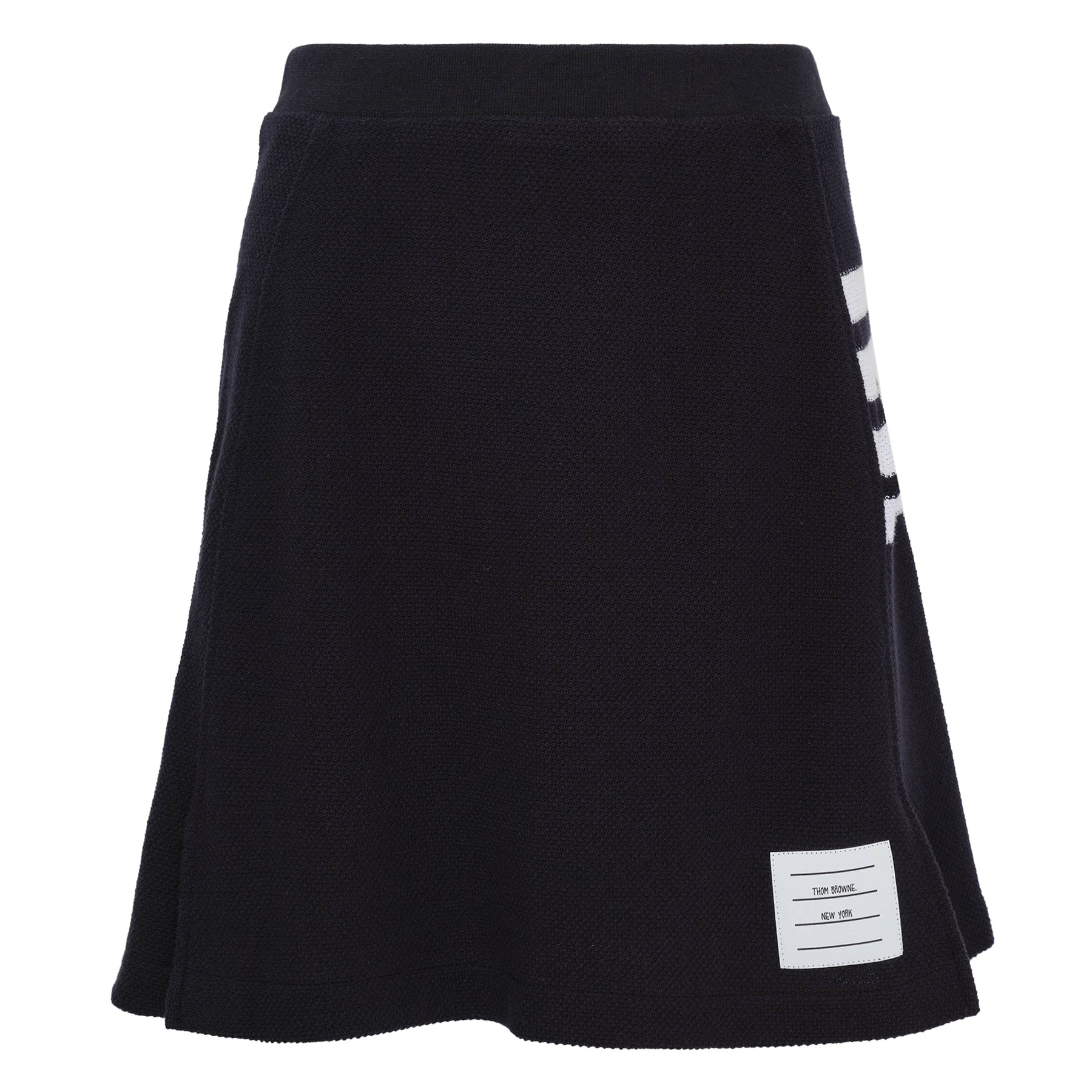 Thom Browne Box Pleat Skirt delivers classic American prep school elegance with signature tailored construction. Crafted from premium textured wool in sophisticated navy, featuring sharp box pleats and the brand's iconic four-bar stripe detail. The structured silhouette and meticulous craftsmanship embody Thom Browne's refined aesthetic for contemporary wardrobes.