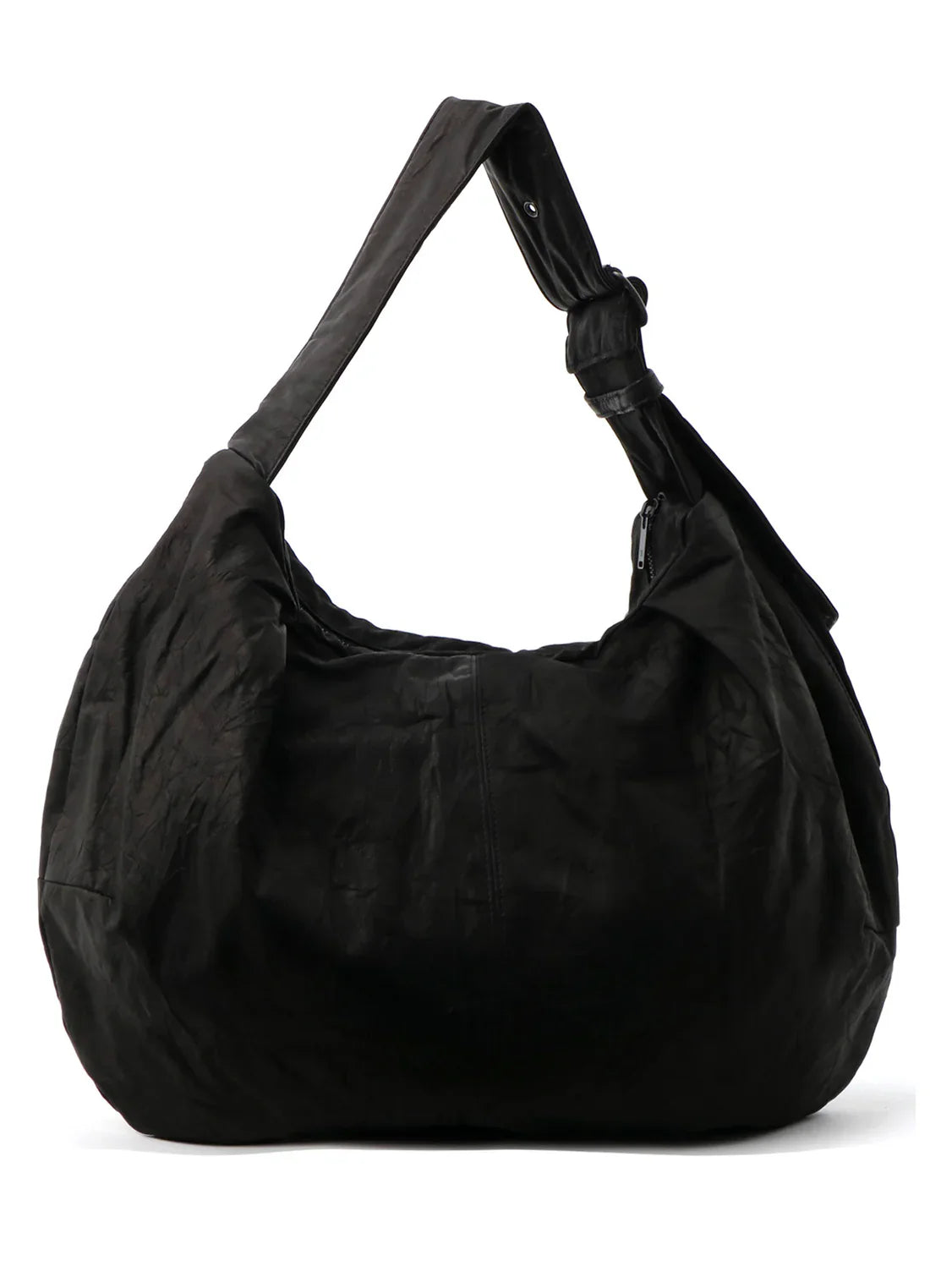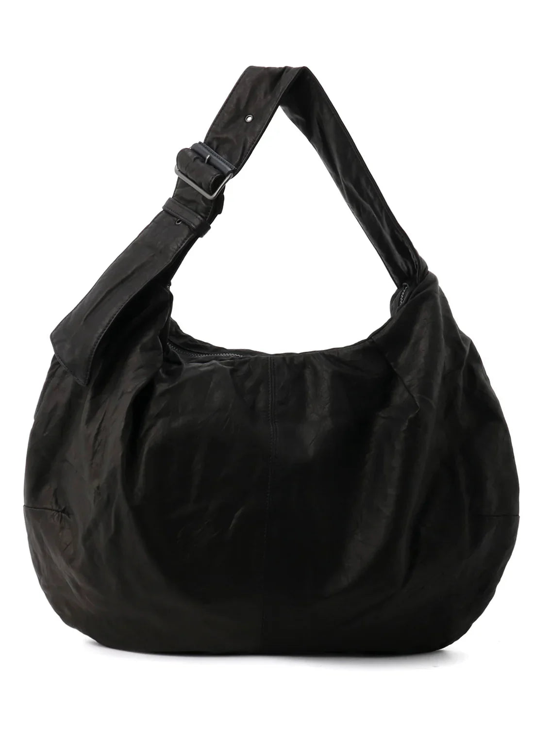 This leather bag features a unique dumpling shape, made from soft and shiny materials with a textured wrinkled effect. The design renews a previously popular style by adding a larger buckle and adjustable straps. Inside, it has a practical pocket. Due to leather properties, slight color fading may occur from sweat and friction.