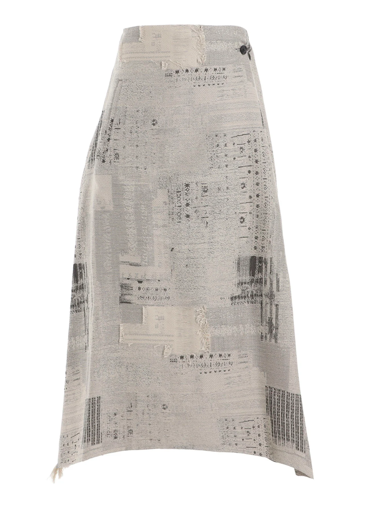 Patchwork Jacquard Wrap-Like Flare Skirt